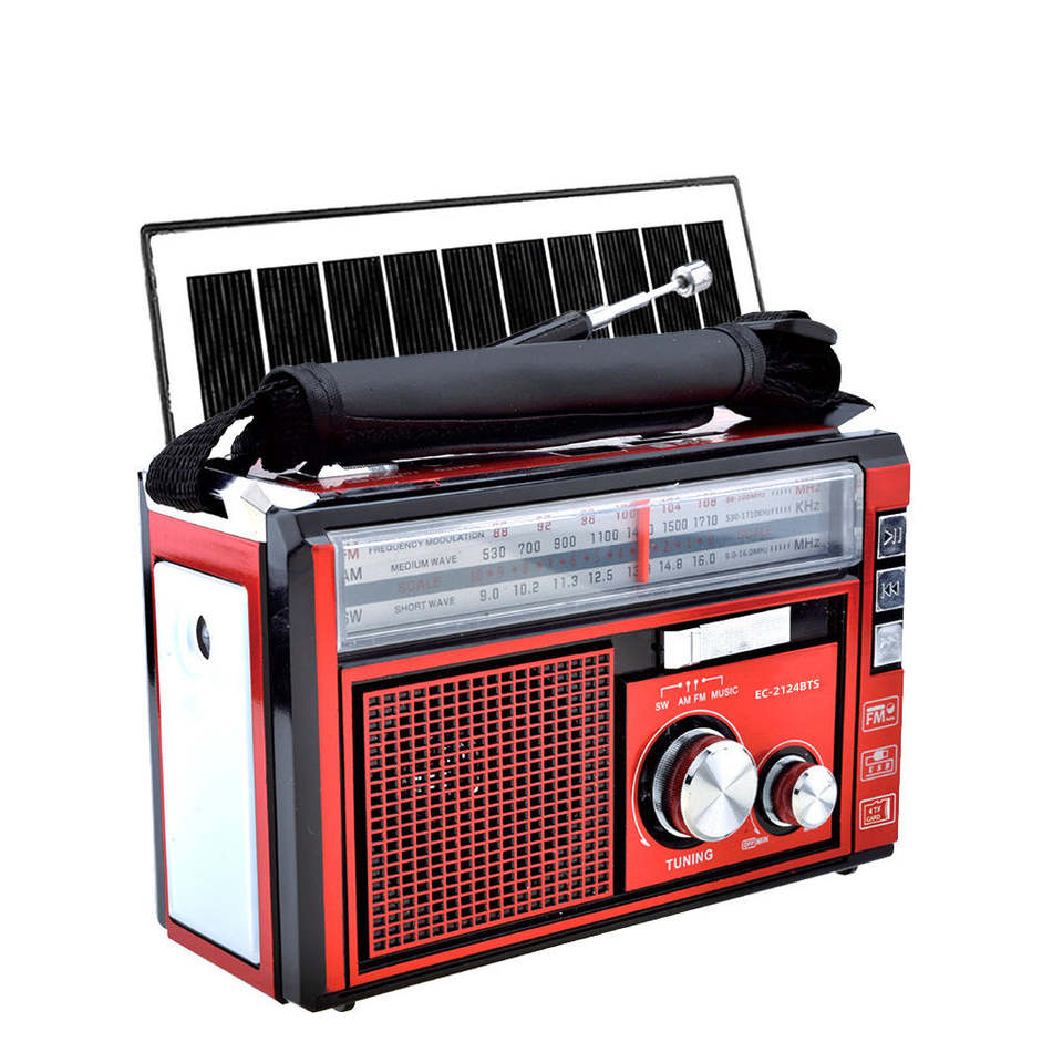Lecteur portable trois bandes avec lampe torche LED, panneau solaire, fonction radio BT et MP3