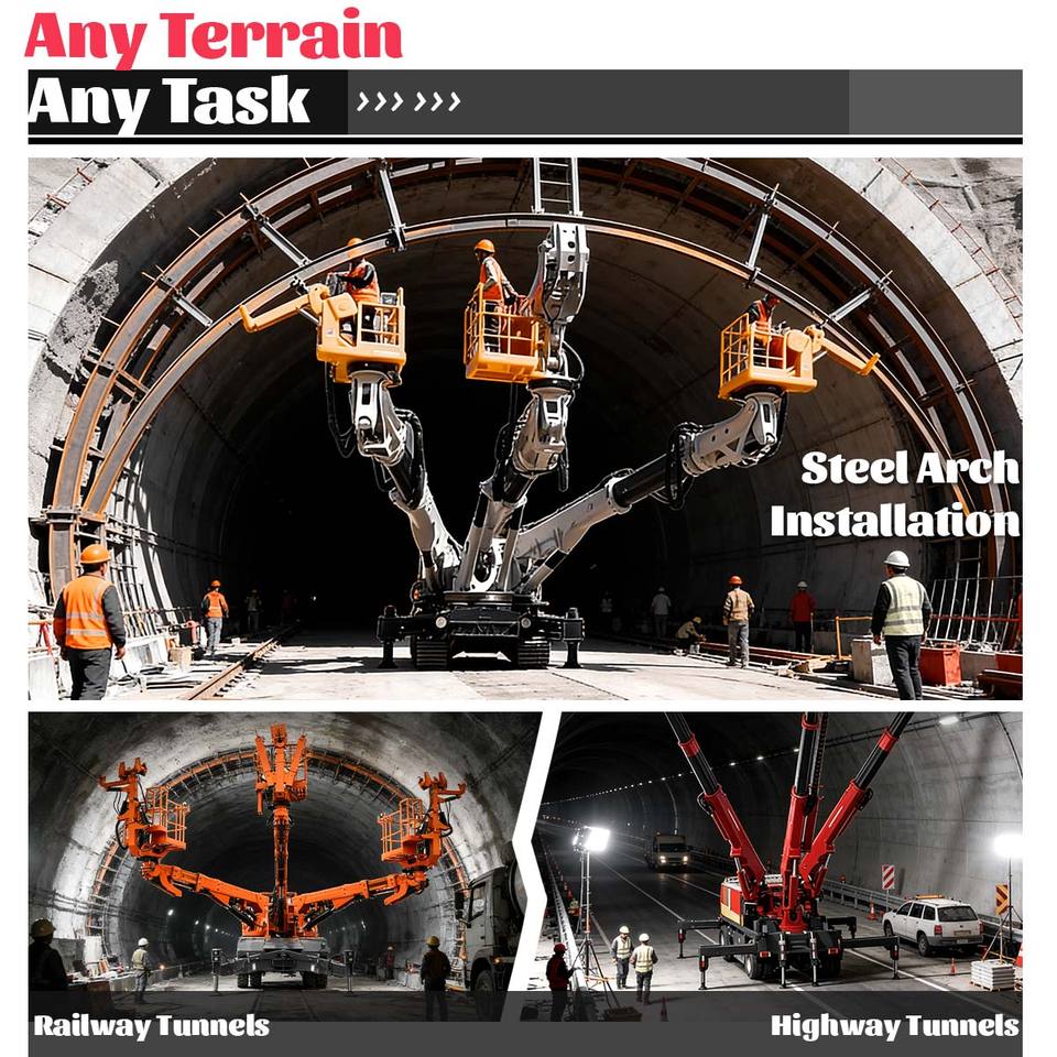 Machine tunnelatrice géante à trois flèches, installateur hydraulique d'arches en acier pour l'exploitation minière et la construction