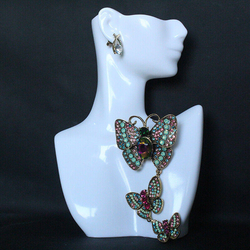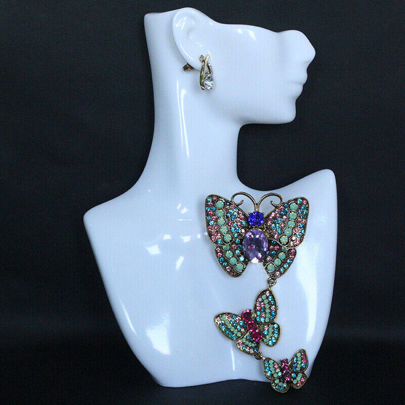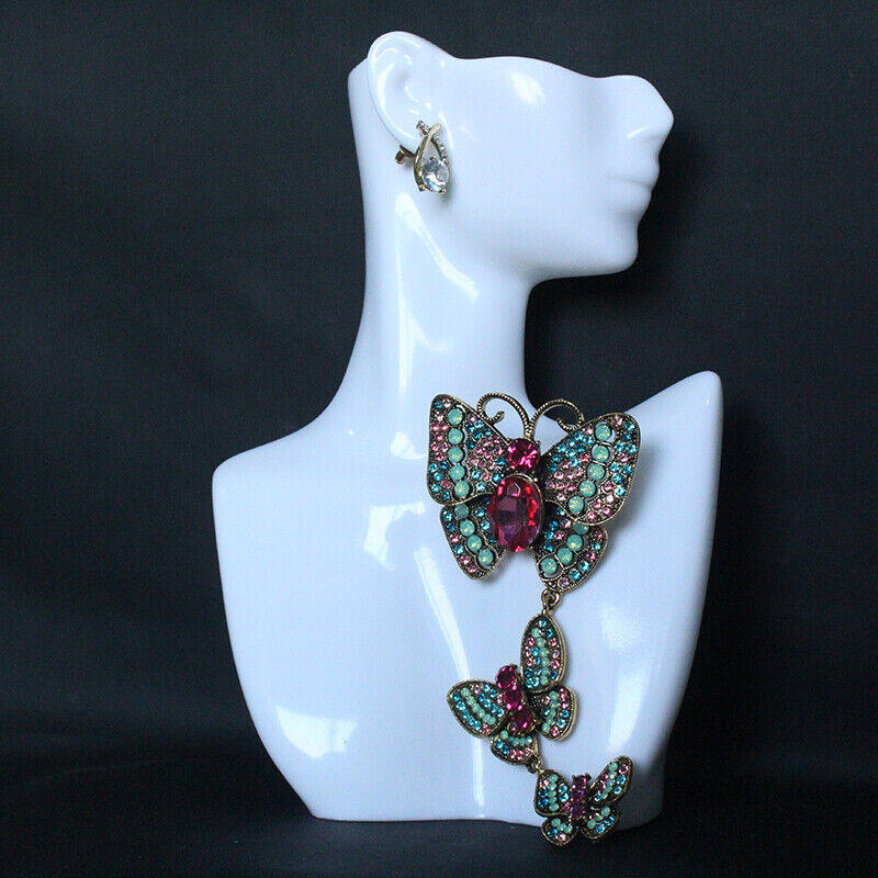 Trois broches papillons connectées avec strass colorés, accessoires de corsage