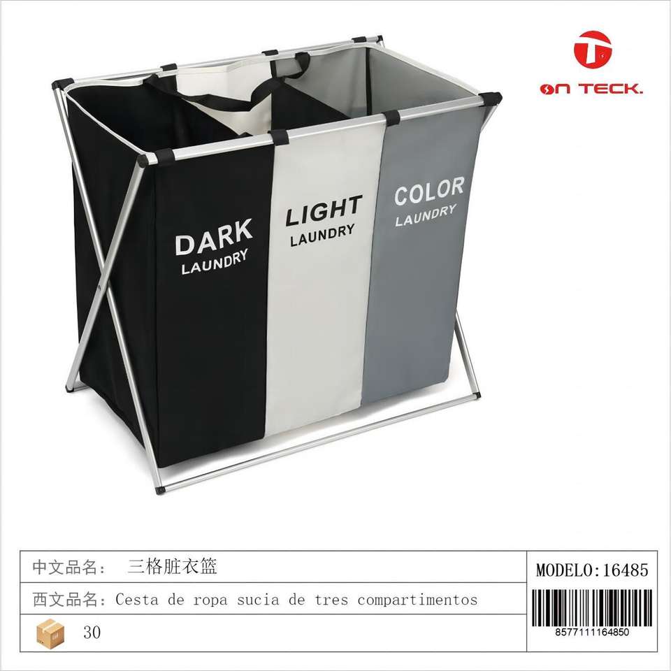Panier à linge à trois compartiments, 6 pièces, organisateur pliable, vente en gros, rangement domestique, panier à linge à trois compartiments pliable, vente en gros