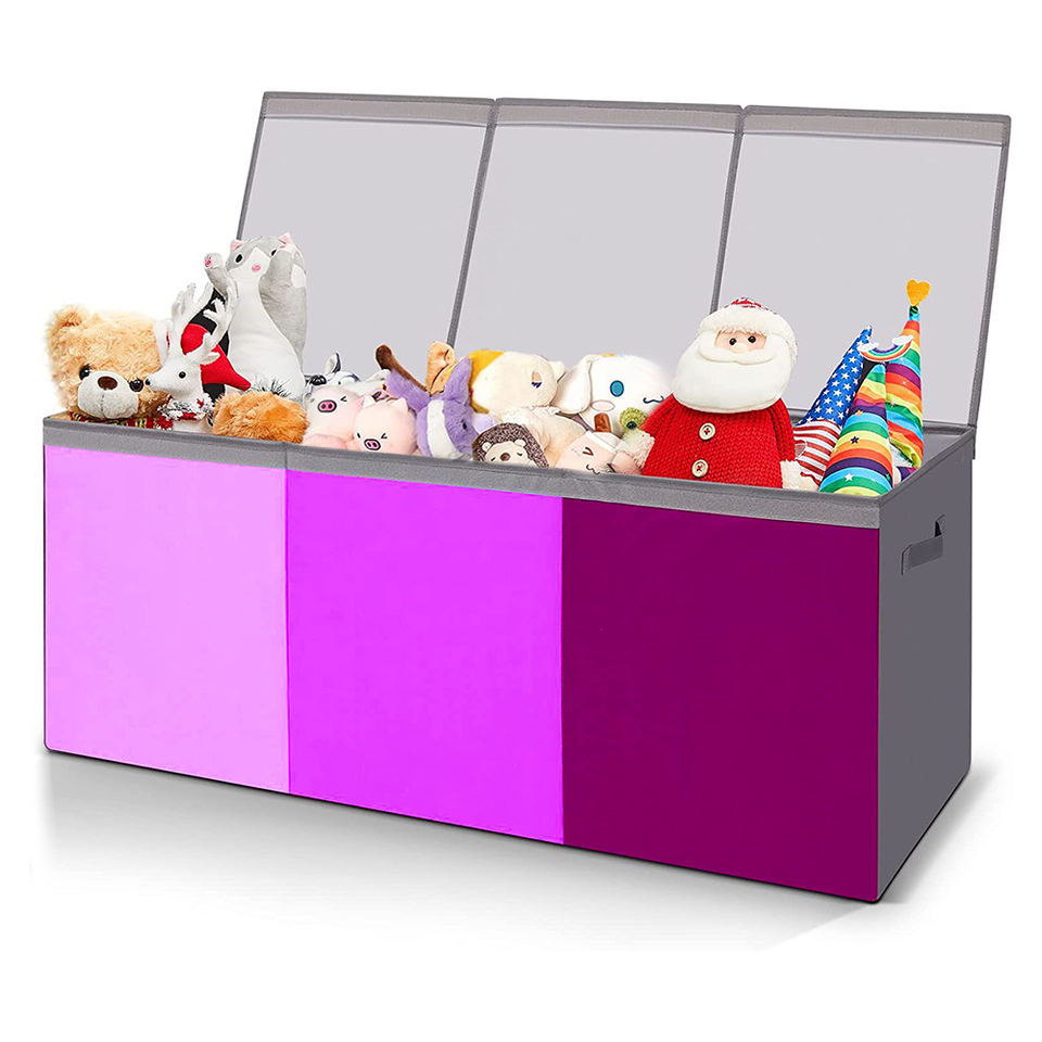 Bacs de rangement pour jouets à trois compartiments Grand coffre à jouets avec couvercles détachables