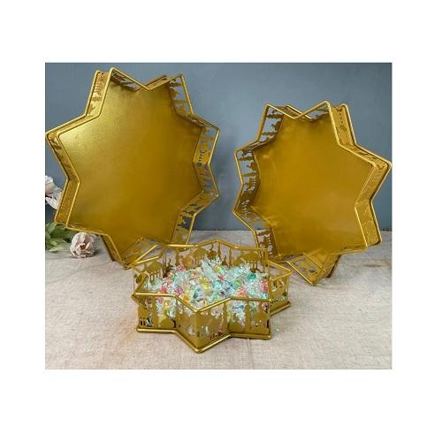 Plateau de fruits secs islamique de trois tailles différentes en métal plateau de chocolats de couleur jaune aux prix les plus bas