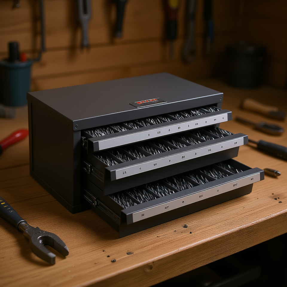 Three Drawer Drill Bit Dispenser Cabinet 1mm To 13mm Organized Labels Stackable Storage Tool Organization Model D0100HADSXA