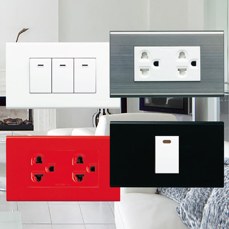 Prises unidirectionnelles à trois gangs Commutateur à 2 gangs Prises et interrupteurs muraux pour la maison