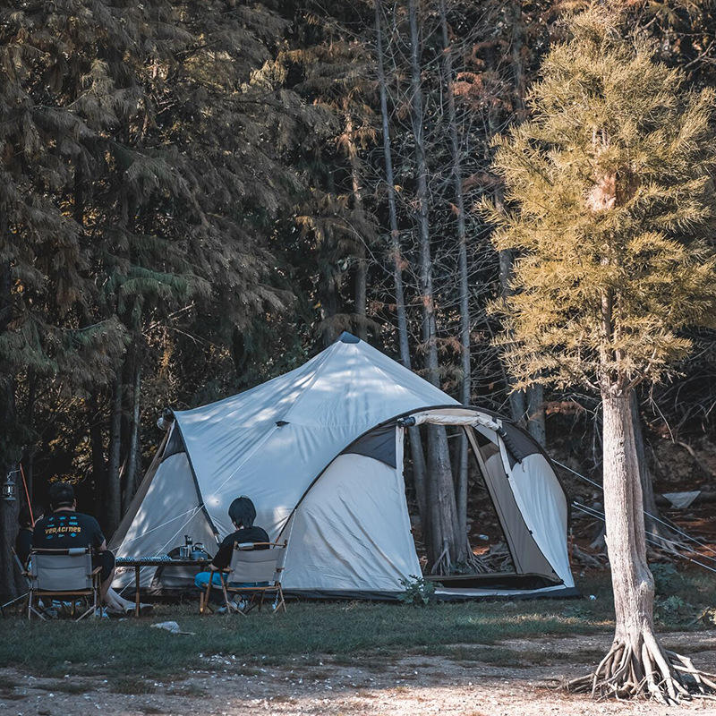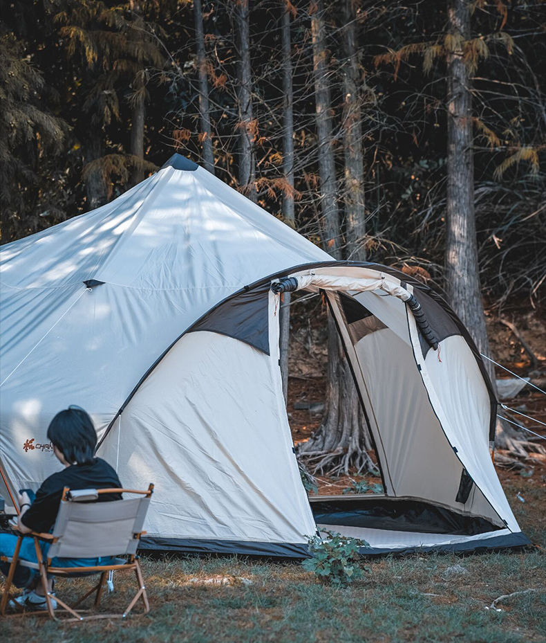 Grande tente de camping hexagonale à trois portes, style familial, grande tente de camping