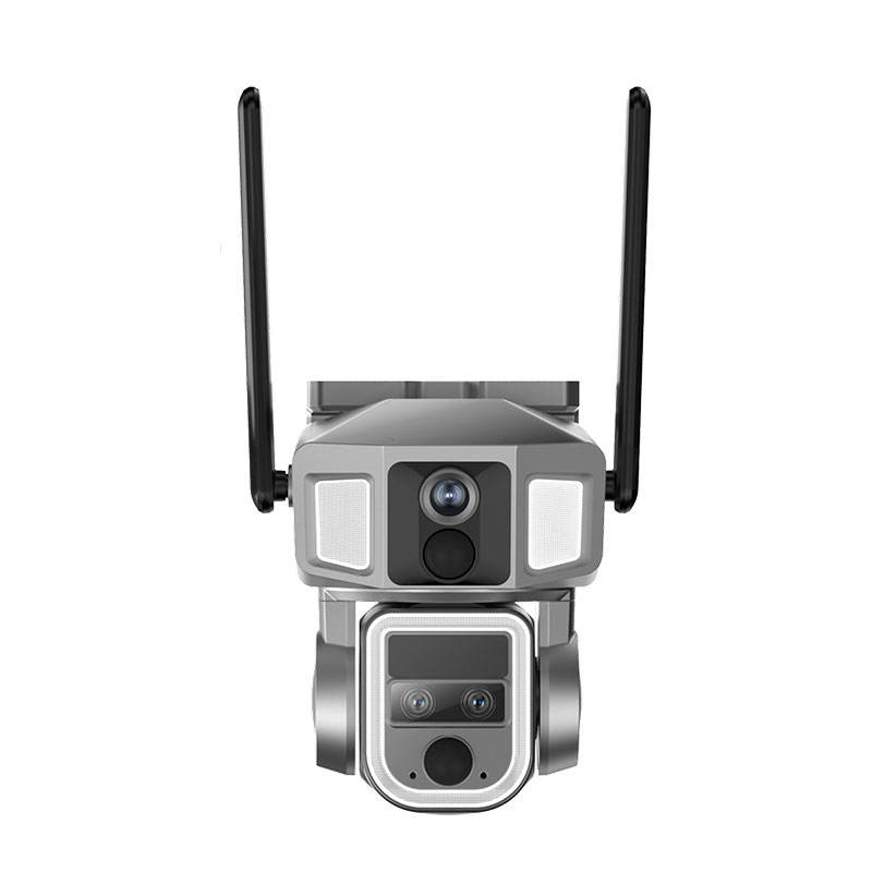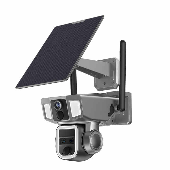 Trois images extérieur Intelligent panoramique 10 x Zoom 4G lampadaire solaire 12V PTZ CCTV caméra de sécurité WIFI avec panneaux solaires