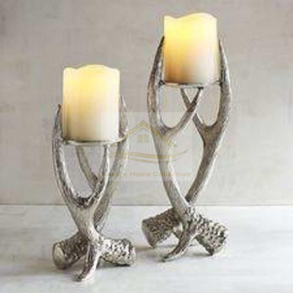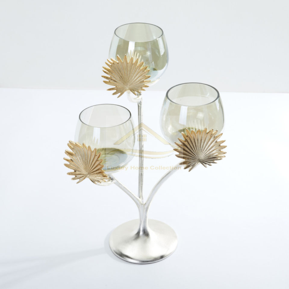 Bougeoir en verre trois en un éléments de forme florale de couleur dorée pour bâtons de bougie décoratifs et porte-cire brute et bocaux