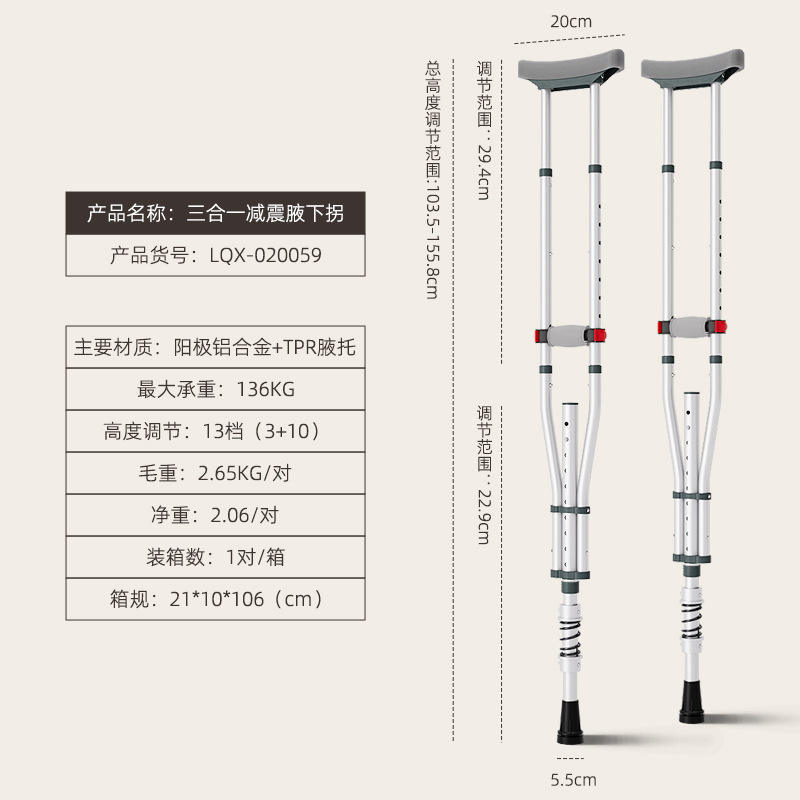 Béquilles sous-braîtiennes trois-en-un absorbant les chocs en alliage d'aluminium à hauteur réglable pour la récupération après fracture