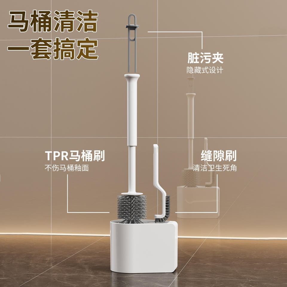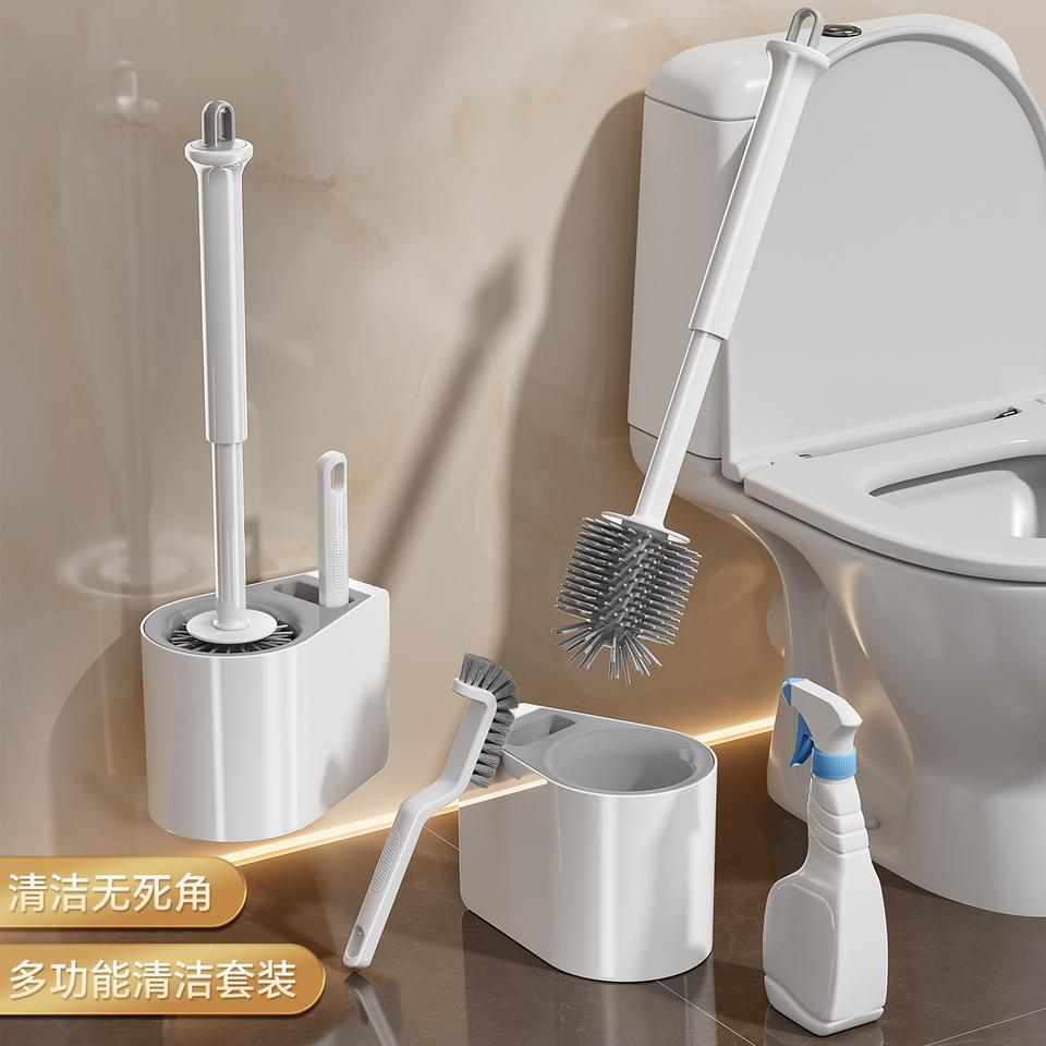 Ensemble de brosses de toilette 3 en 1, brosse TPR à long manche avec nettoyeur de fentes, sur pied ou murale, pour le nettoyage de la salle de bain
