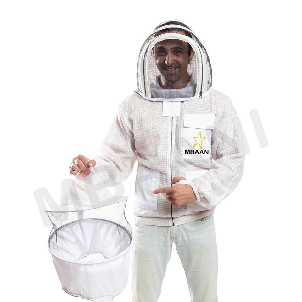 Veste d'apiculteur à trois couches de couleur blanche avec voile rond et voile de protection