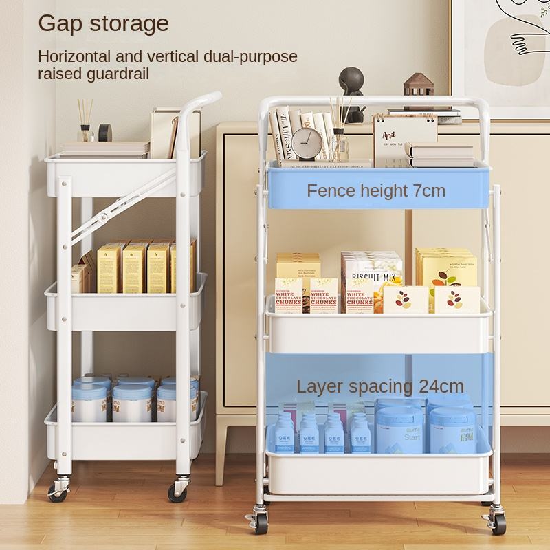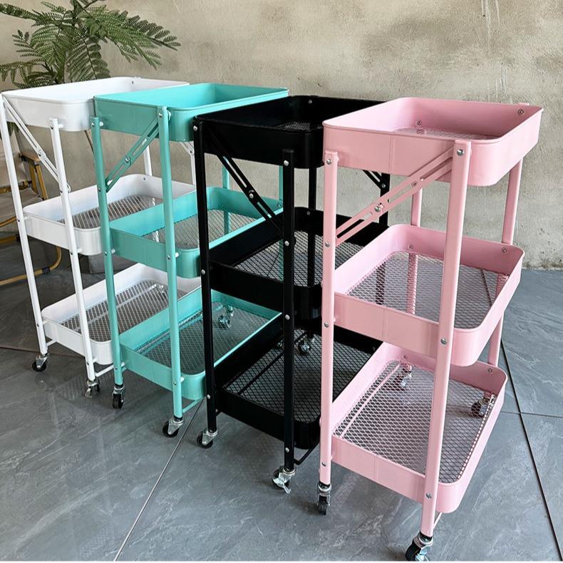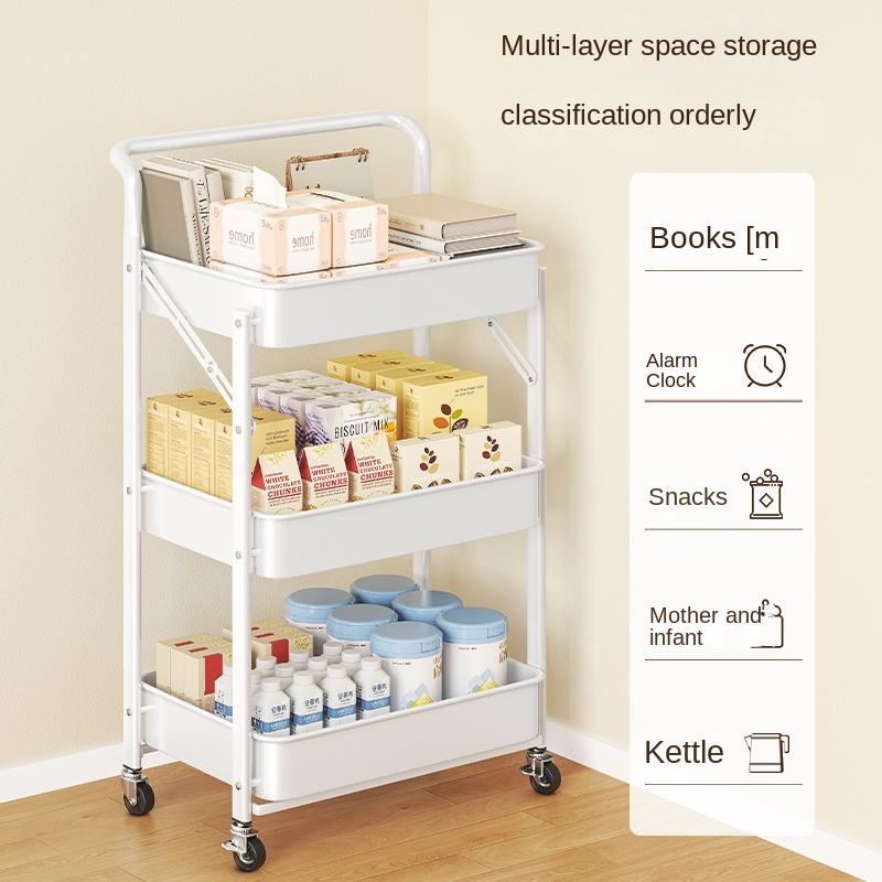 Chariot de rangement pliable à trois niveaux pour cuisine, salle de bain, chambre à coucher - Rangement mobile au sol pour jouets et collations de bébé