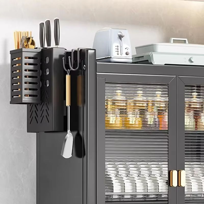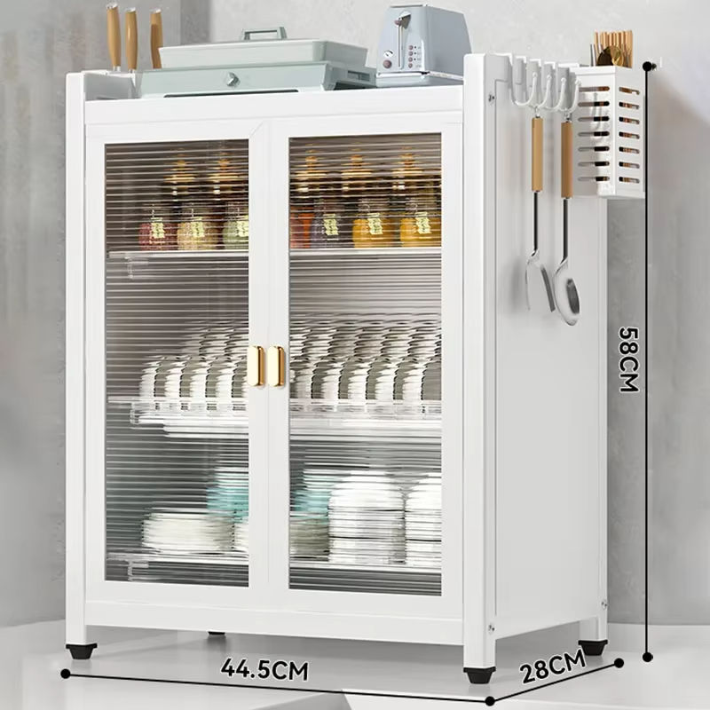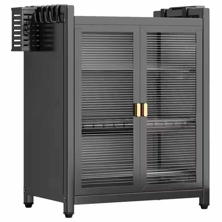 Meuble de Rangement de Cuisine en Acier à Trois Niveaux Grande Capacité Anti-Poussière Avec Portes