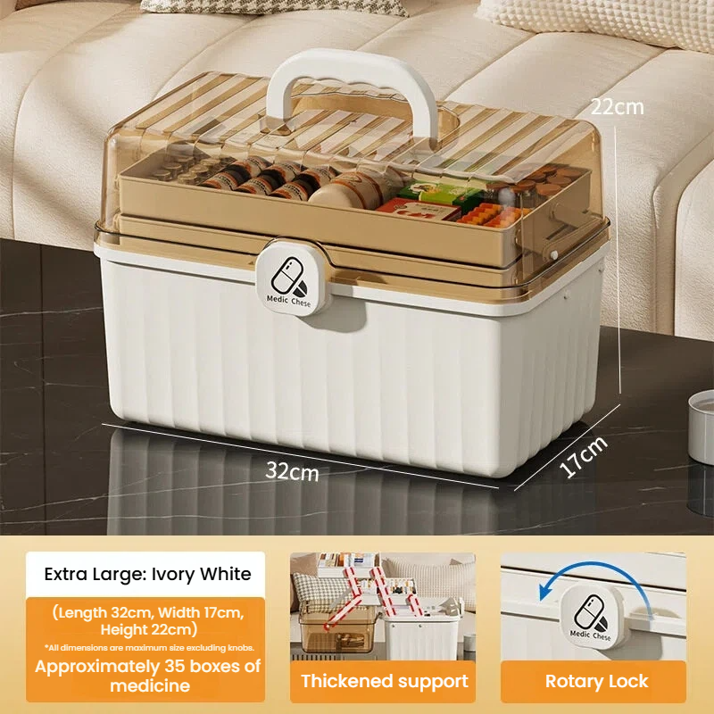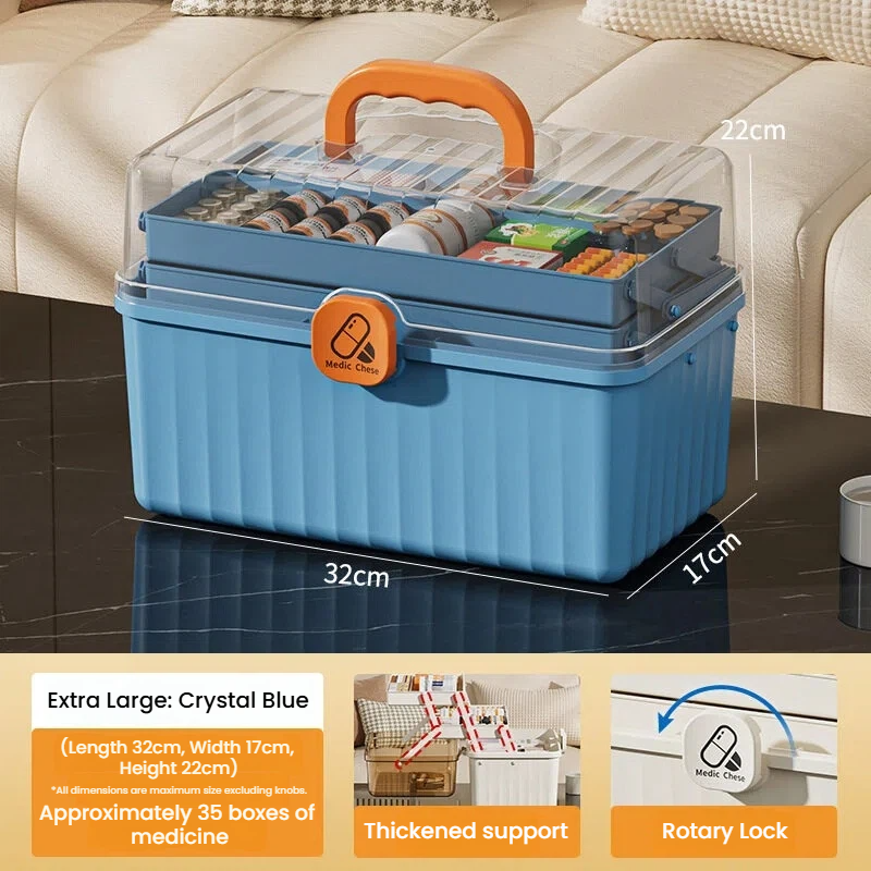 Boîte à médicaments à trois couches, trousse de premiers soins pliable, organisateur de stockage médical portable, étui à médicaments de grande capacité pour la maison
