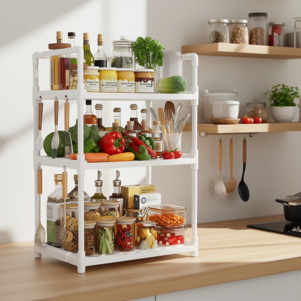 Étagère de rangement de cuisine en plastique à trois niveaux, détachable, minimaliste, pour usage domestique, étagère multifonctionnelle