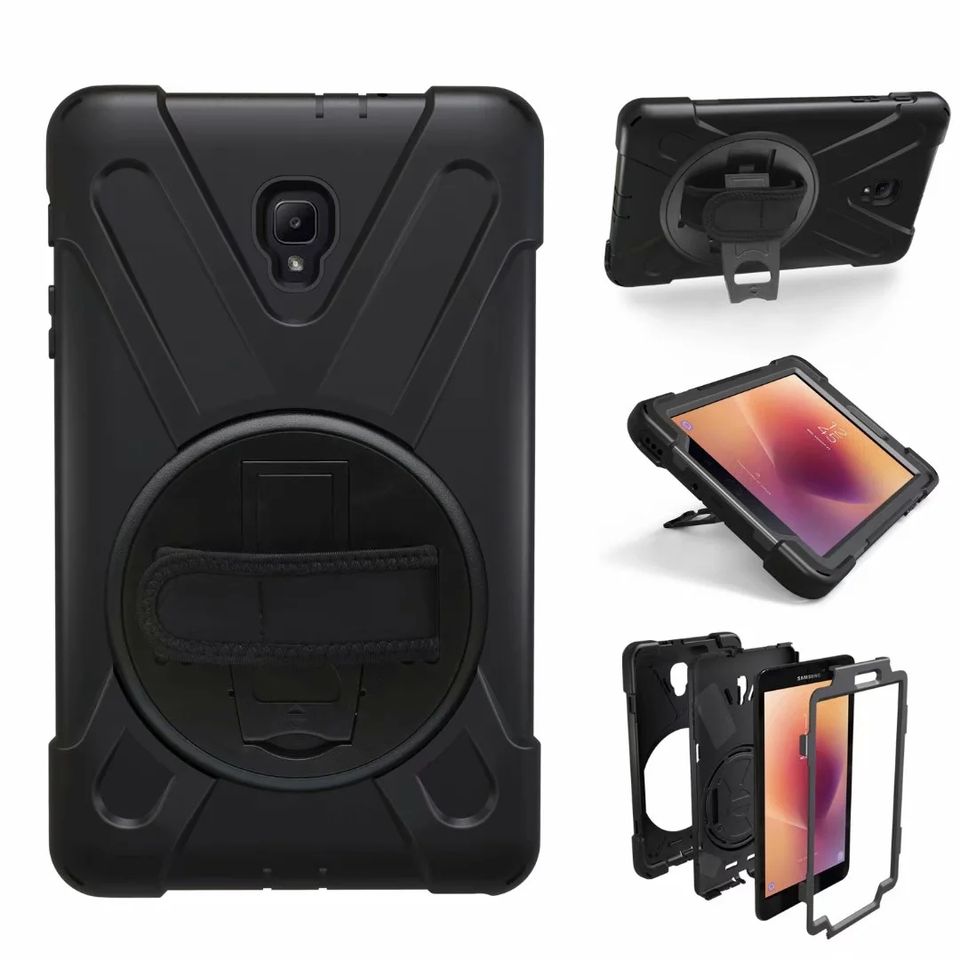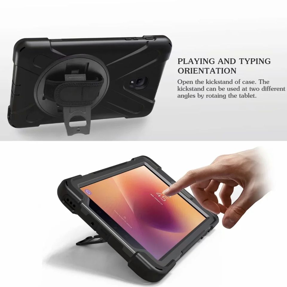 Étui de tablette robuste à trois couches avec support pivotant à 360 degrés/dragonne pour Samsung Galaxy Tab A 8.0 pouces T380/T385