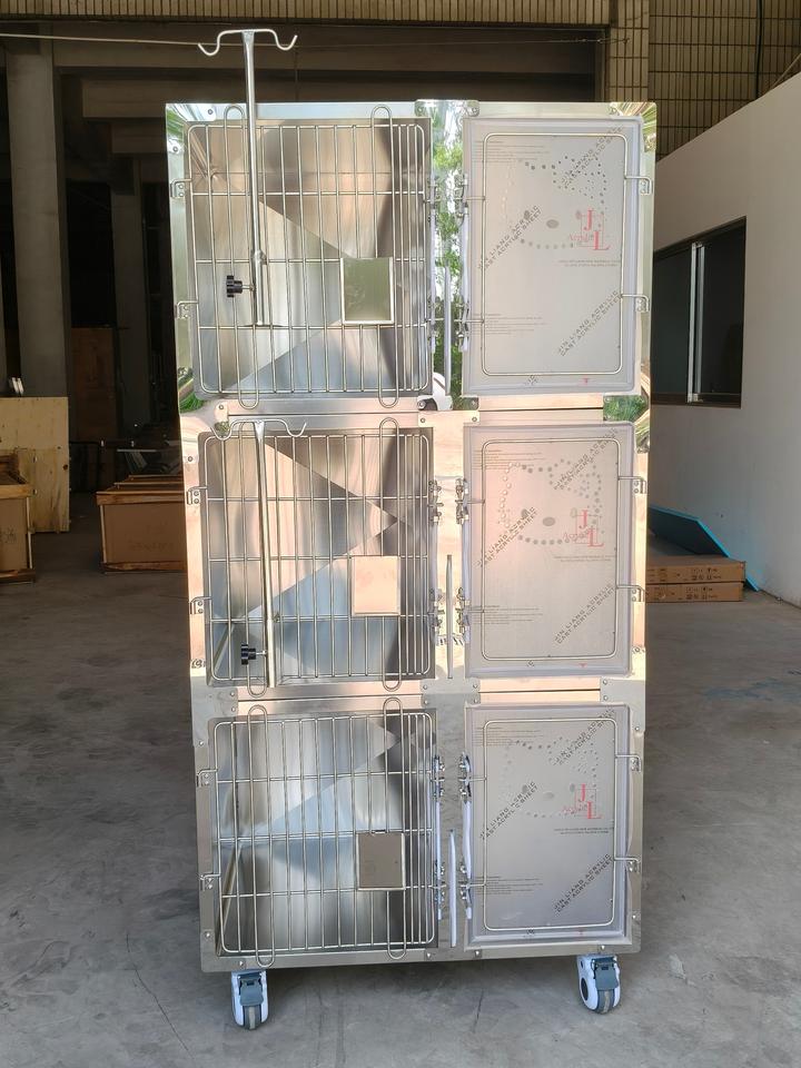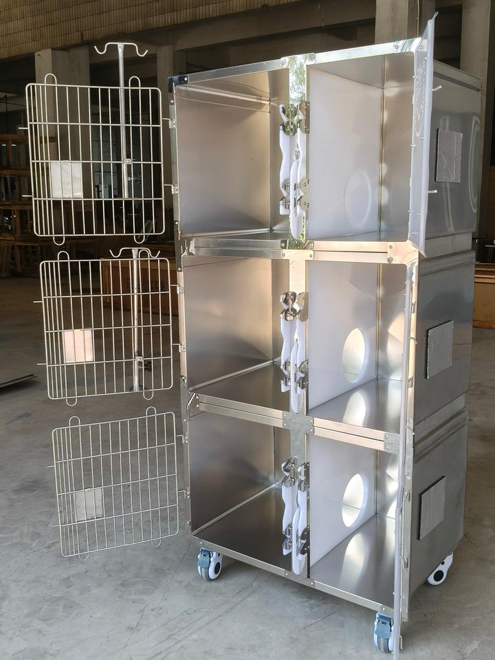 Cage pour animaux de compagnie en acier inoxydable à trois étages, épaisse, sécurisée, réutilisable, pour chats et chiens