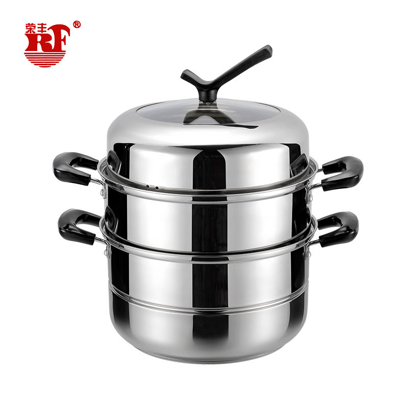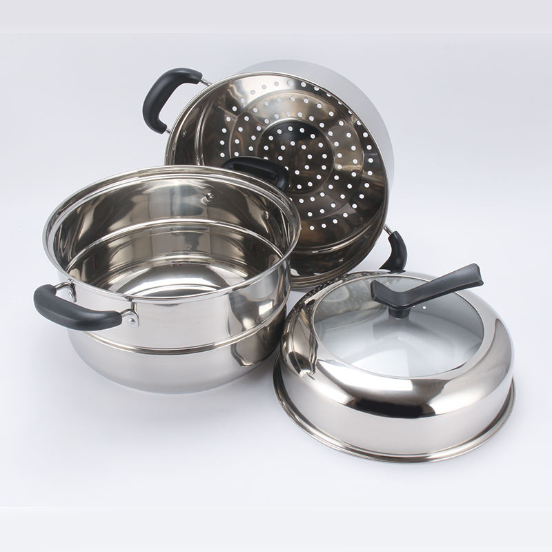 Marmite à vapeur en acier inoxydable à trois couches marmite de grande capacité avec couvercle de support de visualisation et place à la vapeur