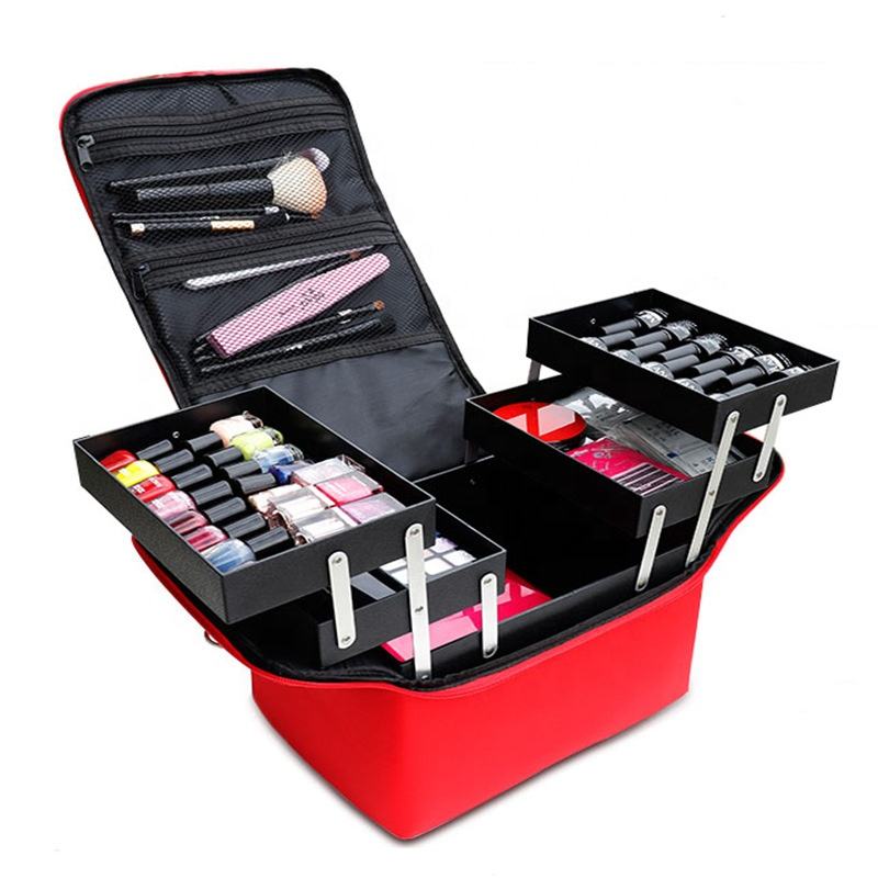 Trois couches grande capacité maquillage organisateur stockage vernis à ongles transporter étui de voyage manucure outils valise noir maquillage sacs