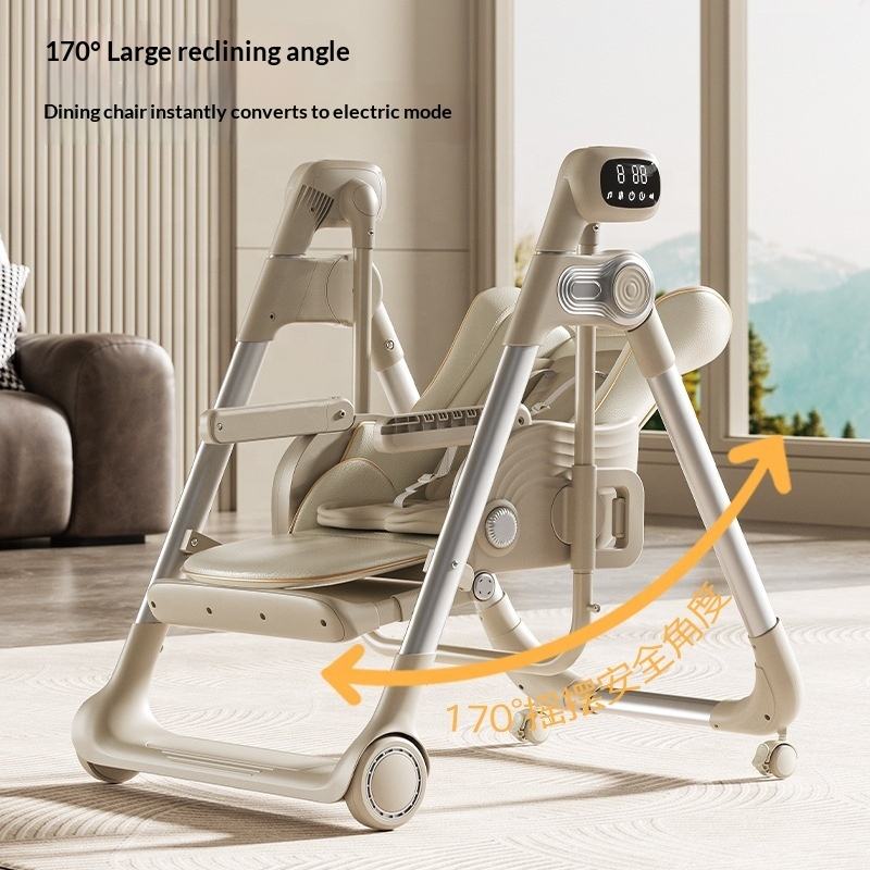 Chaise haute pour bébé Three Little Fish, fonction de sommeil électrique intelligente, multifonctionnelle, pliable, inclinable, siège à bascule en alliage d'aluminium