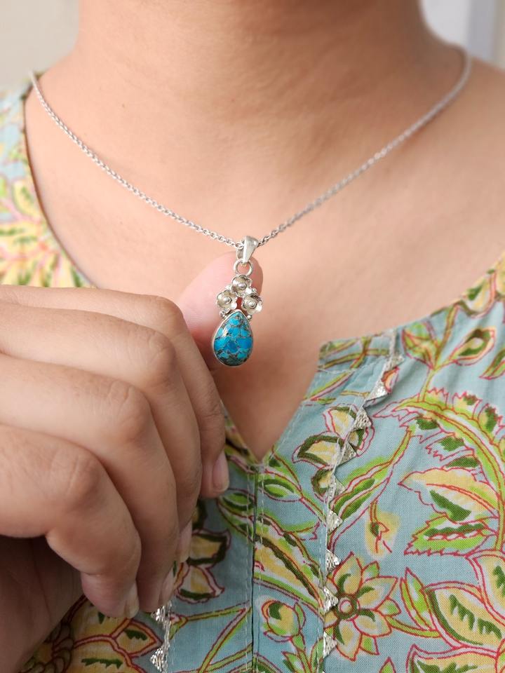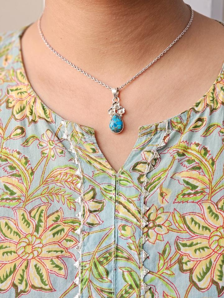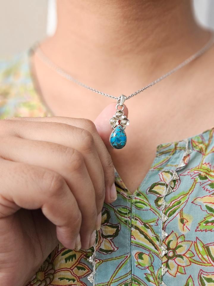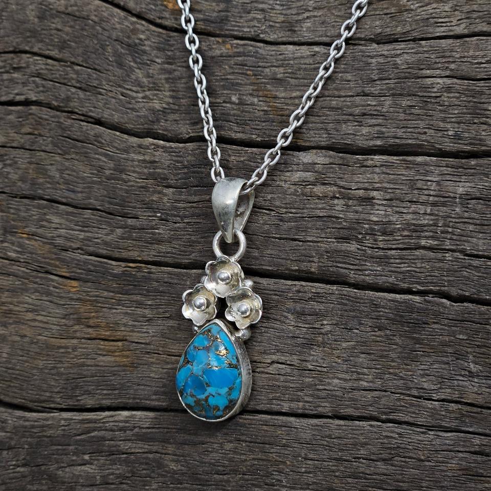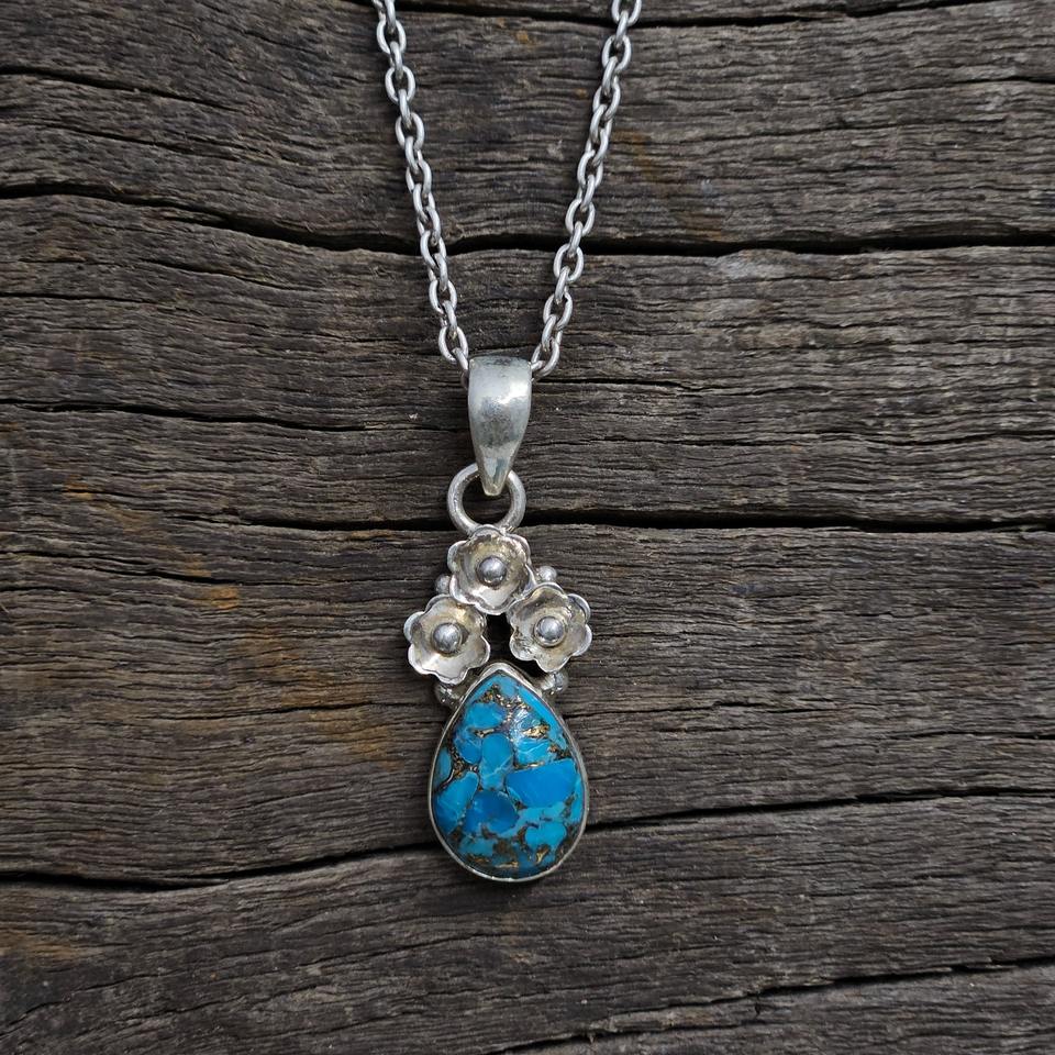 Trois petites fleurs cuivre turquoise pendentif en argent fête porter pendentif en argent léger