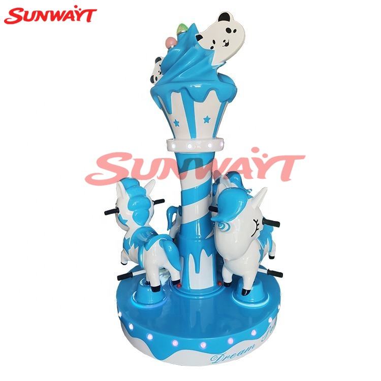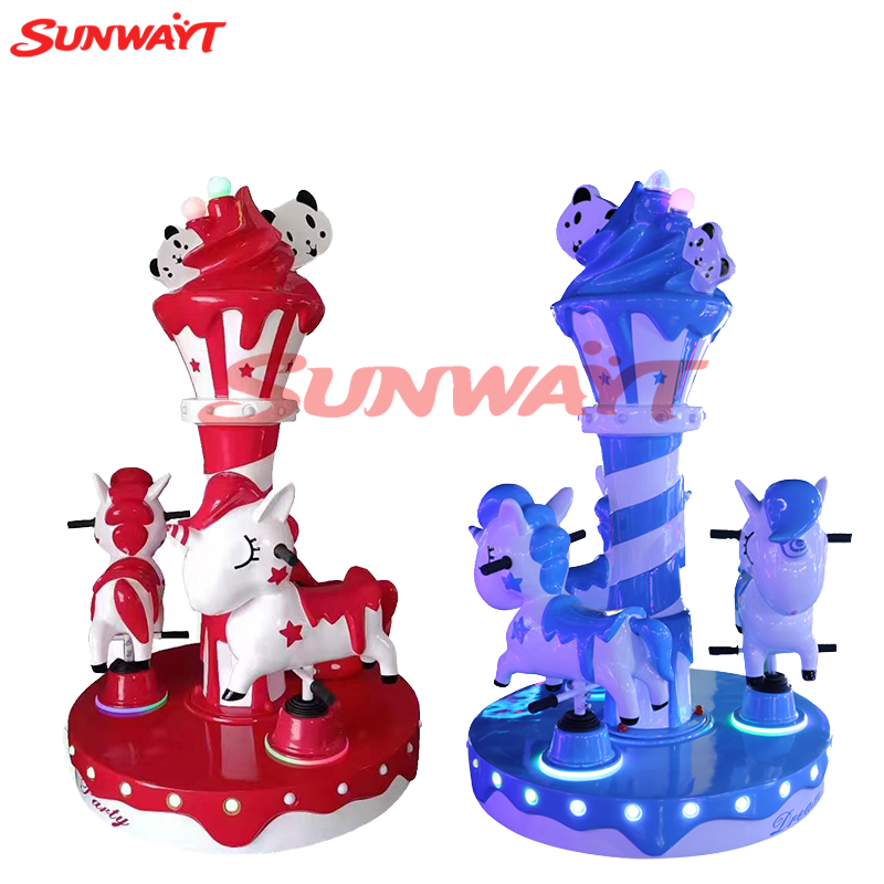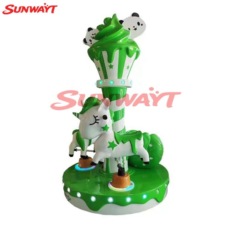 Manège à trois places pour enfants, avec jeu de lancer de pièces, thème Panda, seau à glace et cheval tournant, disponible en plusieurs couleurs, jeux à monnayeur