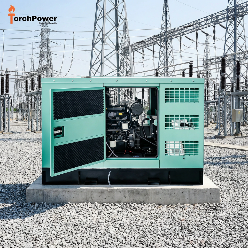 Groupe électrogène diesel silencieux, mini, portable, triphasé, avec alternateur, ATS, pour usage industriel/domestique.