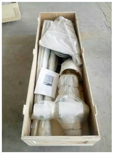 Produit emballé avec de la mousse chargée dans une boîte en bois et une boîte en carton