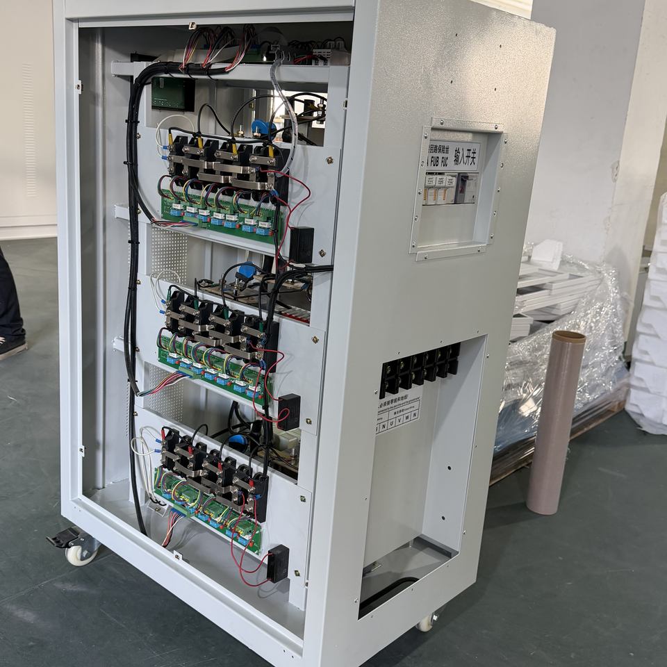 Stabilisateur de tension AC statique triphasé sans contact, régulateur de tension SVC à thyristors en cuivre 50kVA-150kVA