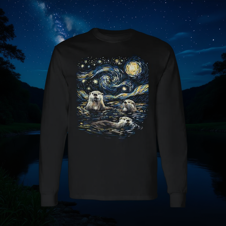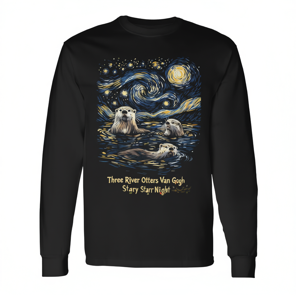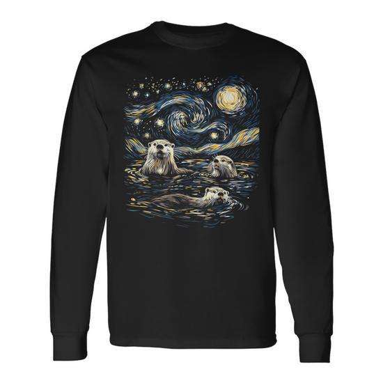 T-shirt à manches longues Three River Otters Van Gogh Starry Night