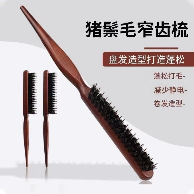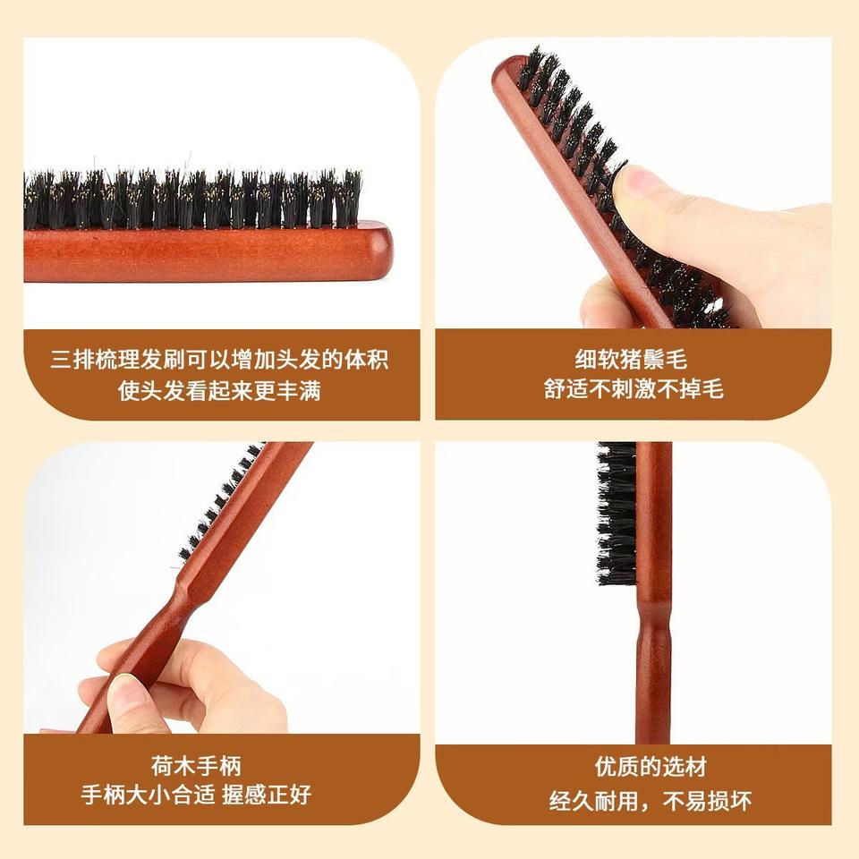 Peigne à trois rangées de poils de sanglier, grande taille, doux pour la peau, pour coiffer, boucler et donner du volume, usage domestique