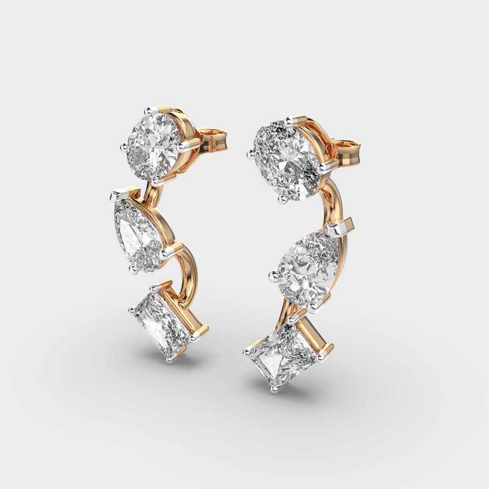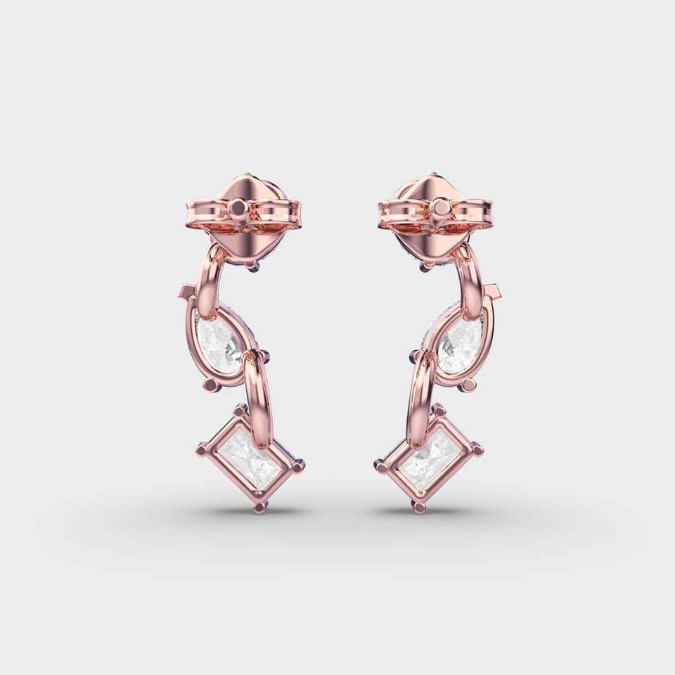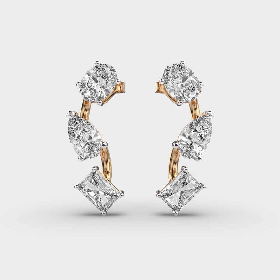 Boucles d'oreilles en diamant de laboratoire à trois pierres Poire ovale et coupe rayonnante Push Back Boucles d'oreilles pour femmes 14k Or massif Cadeau de mariage