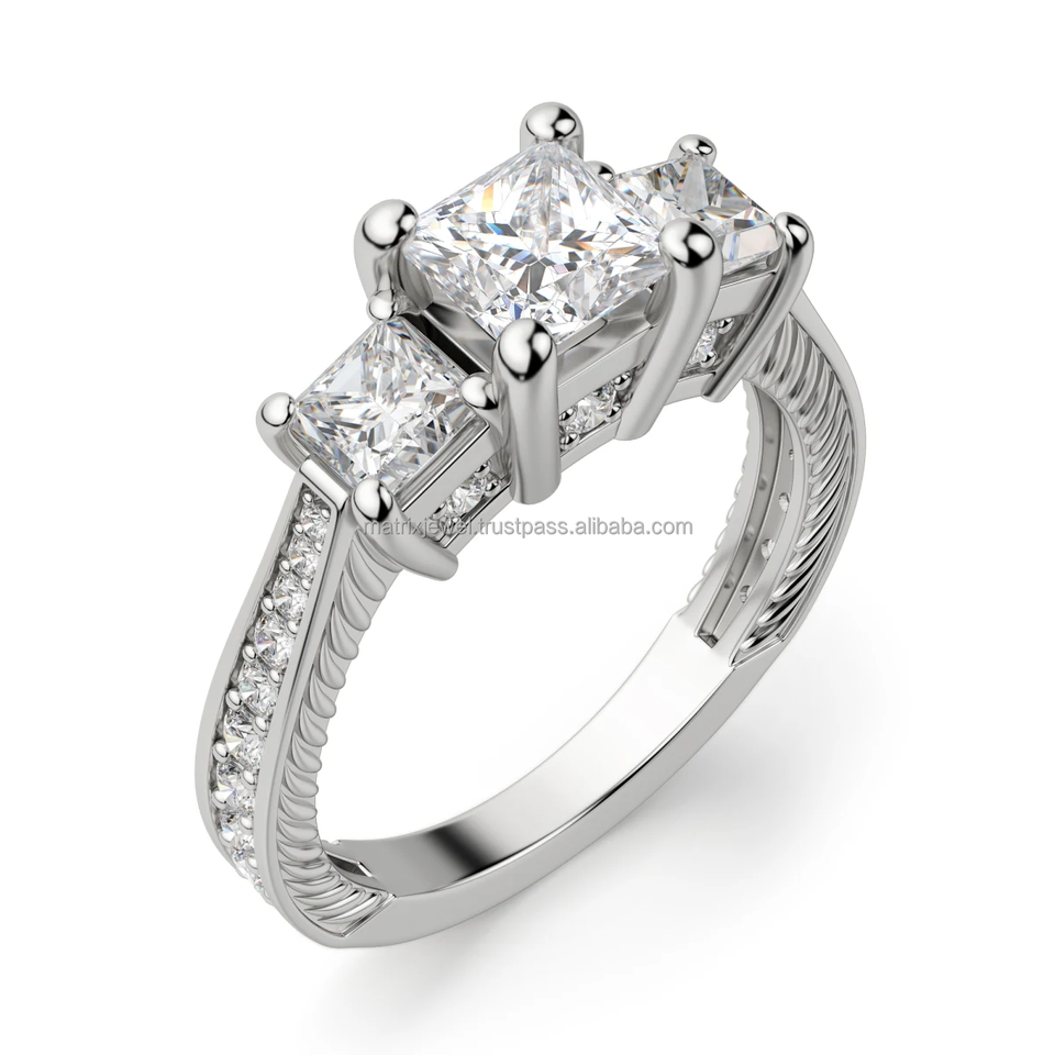 Trois pierres princesse coupe bague en diamant tige VVS Moissanite diamant mariage entrelacement fendu torsadé tige anneau pour les femmes