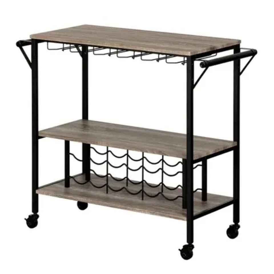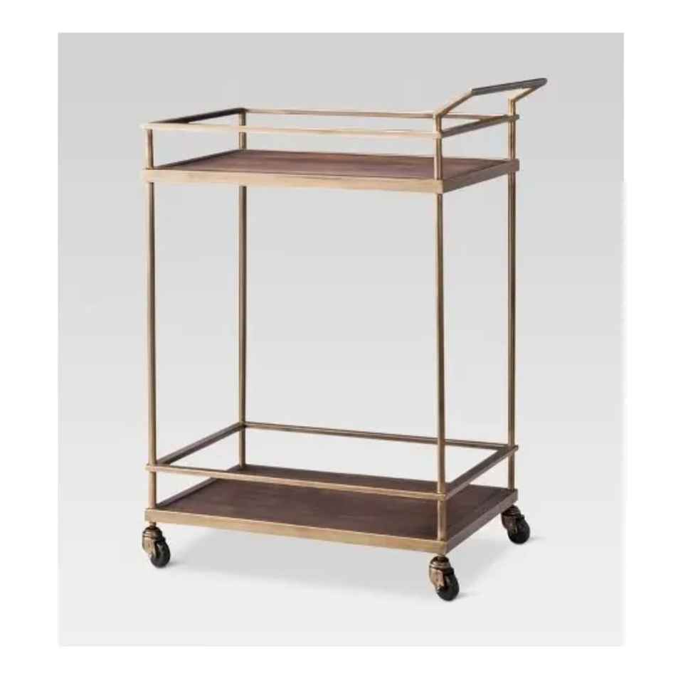 Chariot roulant doré à trois niveaux avec cadre en métal, étagères en bois, poignée, chariot de service mobile, organisateur de rangement moderne et luxueux