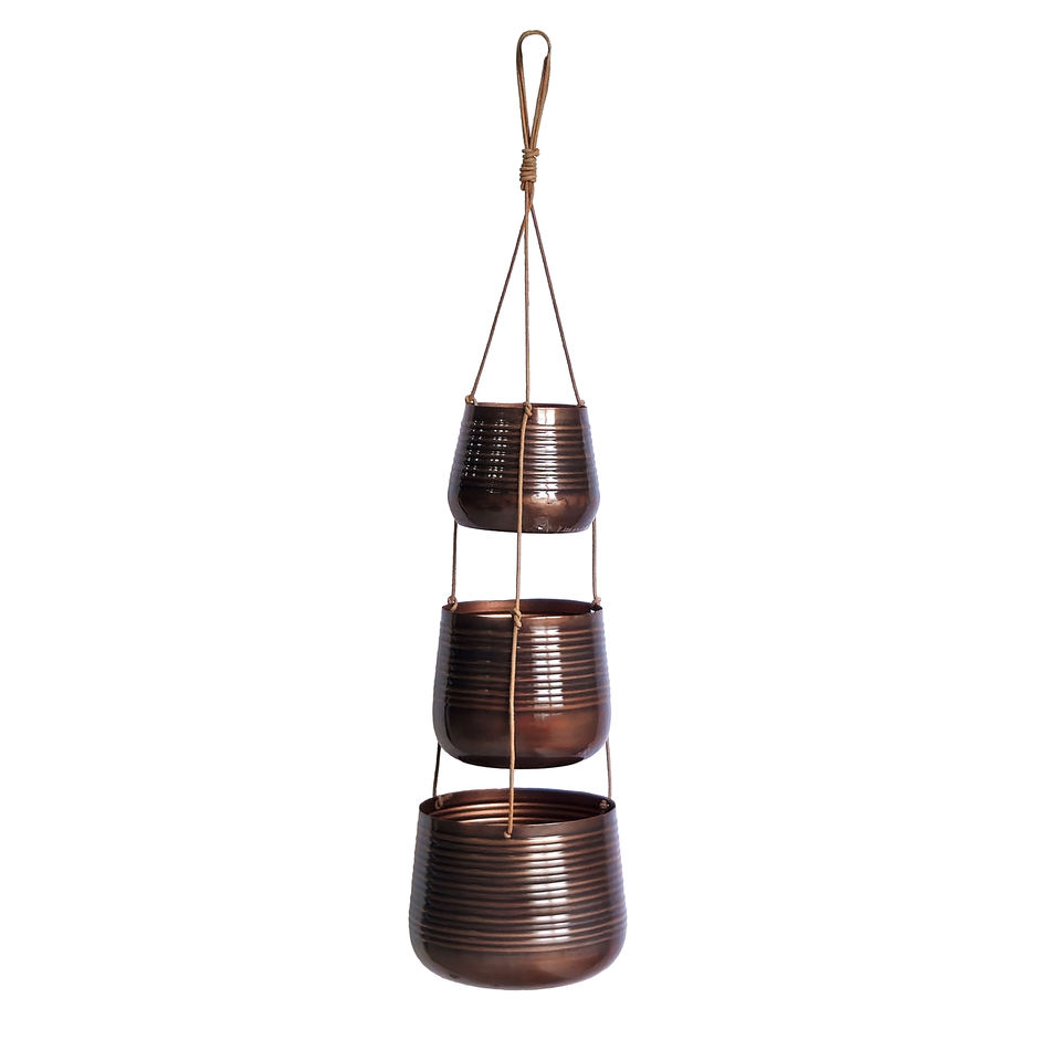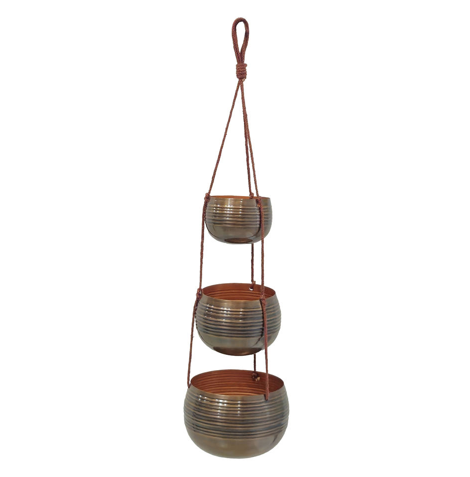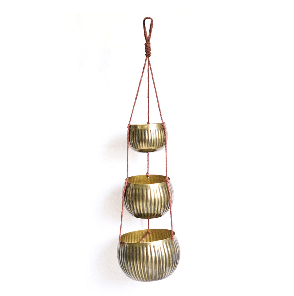 Jardinière en métal suspendue à trois niveaux avec pot de fleur suspendu en corde pour la décoration de jardin intérieur et extérieur