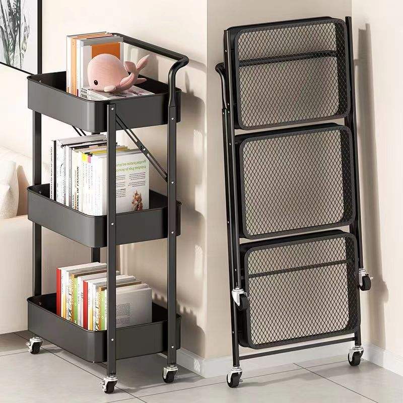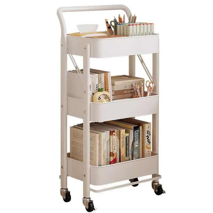 Étagère à collation mobile en métal à trois niveaux avec roulettes pivotantes, chariot de rangement de cuisine sur pied
