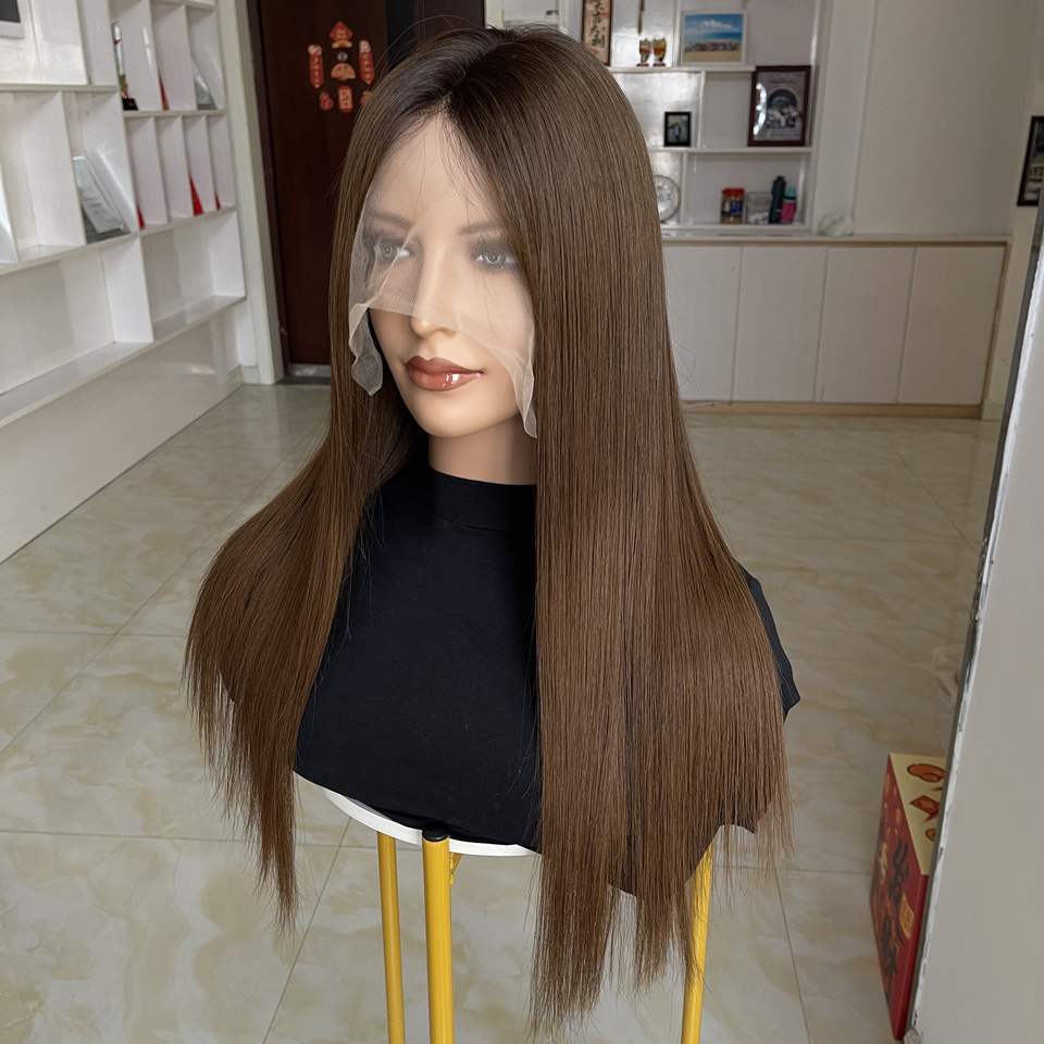 Trois tons O1B/2/4 # Perruque en cheveux vierges chinois, petits nœuds, dessus en dentelle, perruque médicale, ligne de cheveux invisible pour femmes, livraison rapide