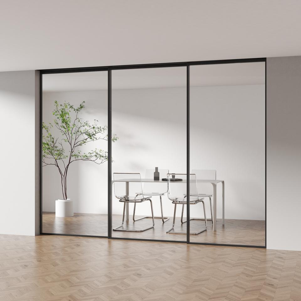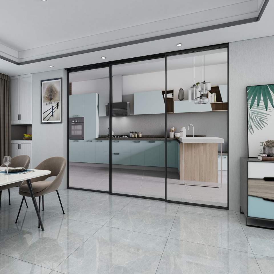 Porte coulissante à trois points de fixation, design postmoderne, cuisine, salon, alliage d'aluminium, porte extrêmement étroite