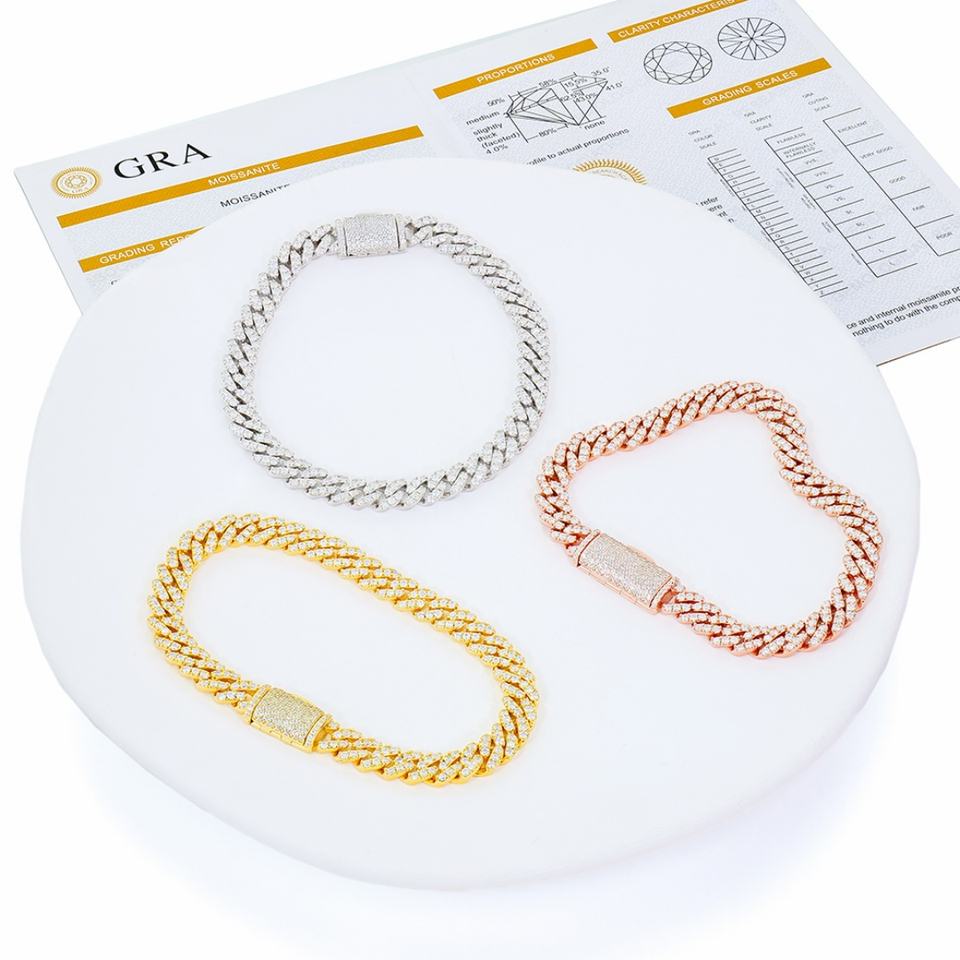 Bracelet cubain en arc circulaire tricolore, argent sterling 925 plaqué rhodium, certifié VVS GRA, moissanite de 6 mm, hip hop