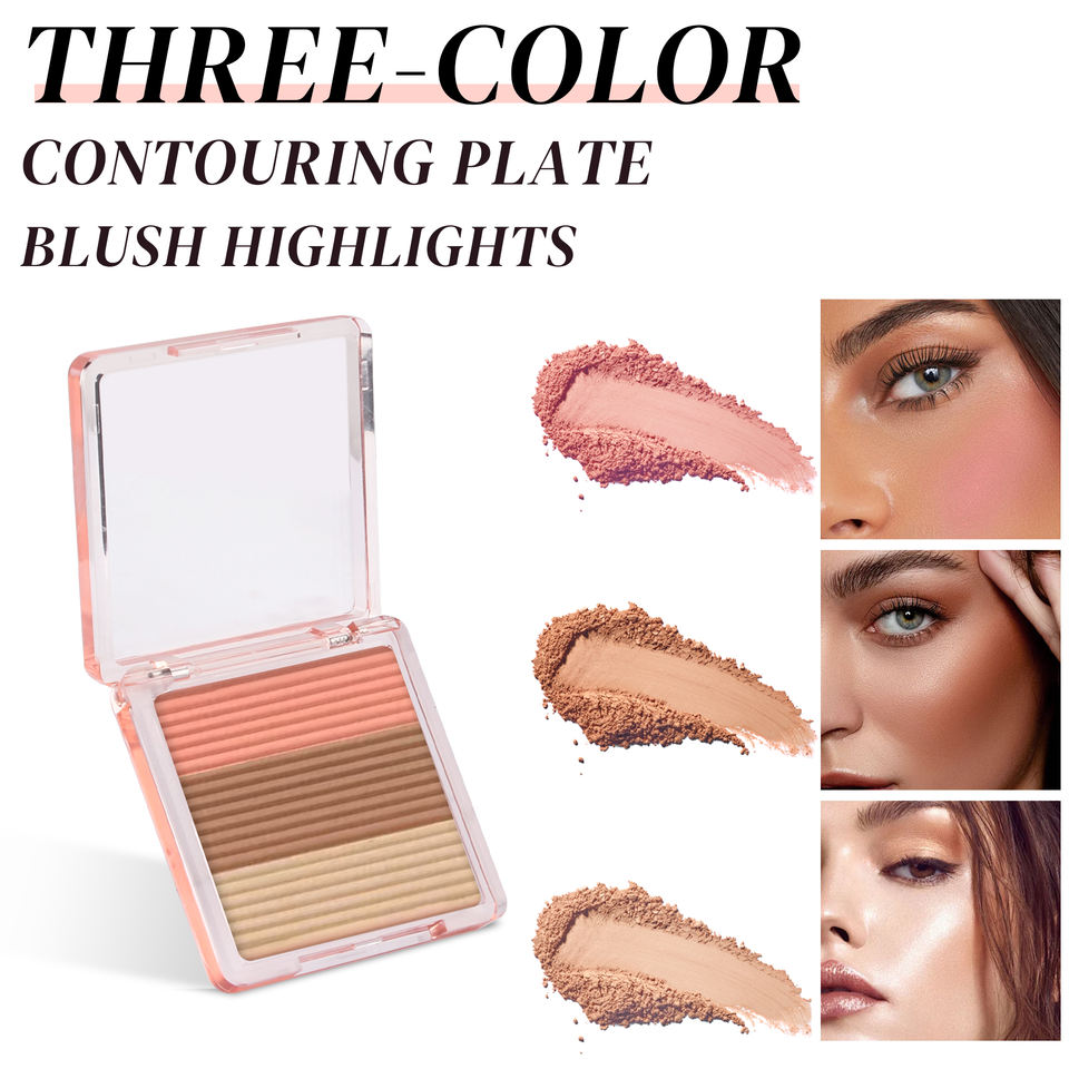 Palette de contouring trois couleurs : Poudre illuminatrice et scintillante, fard mat tout-en-un pour un contouring naturel