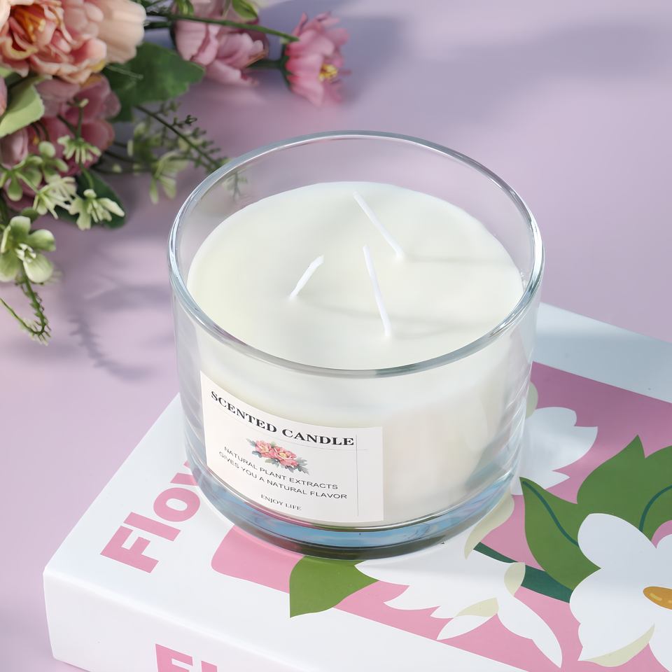 Bougie parfumée en verre à trois noyaux de grande capacité pour la cire de soja Décoration de la maison Chambre à coucher Parfum Cadeau de vacances