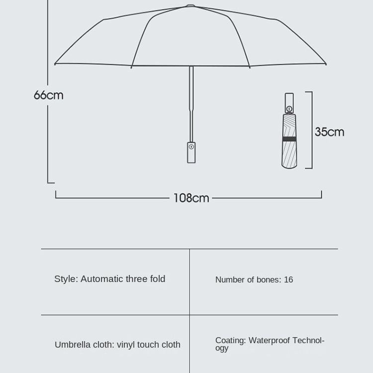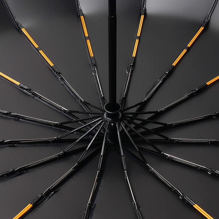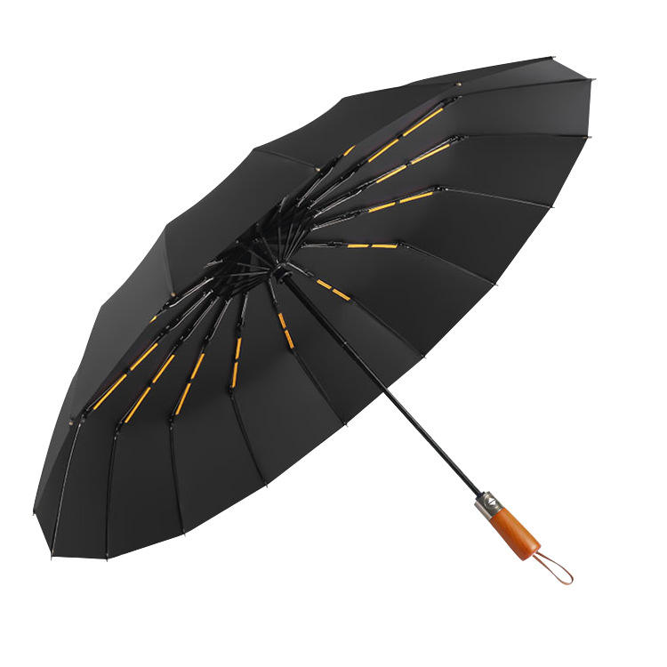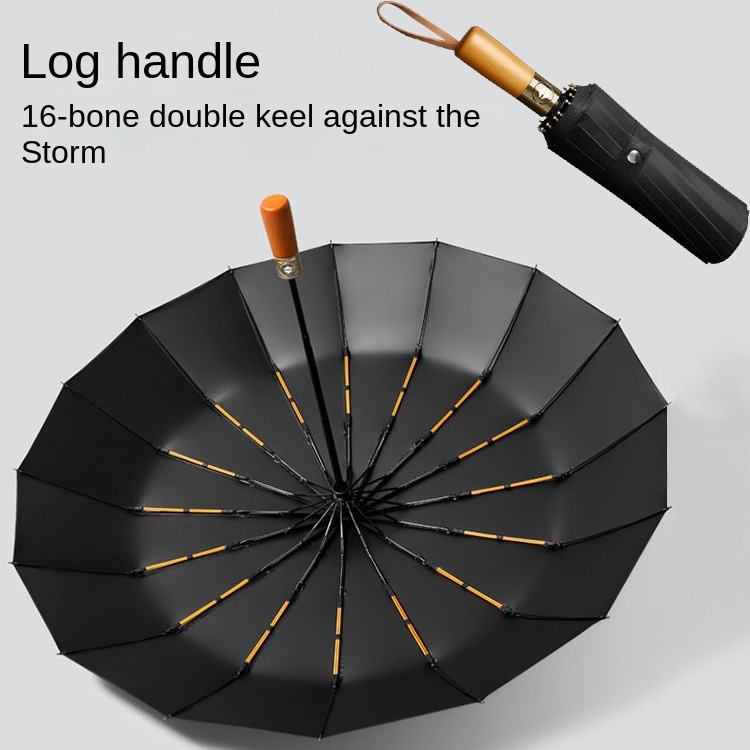 Parapluie pliant automatique à trois sections, 16 baleines, double armature, manche en bois, pour homme, grande taille, idéal pour publicité et cadeau d'affaires