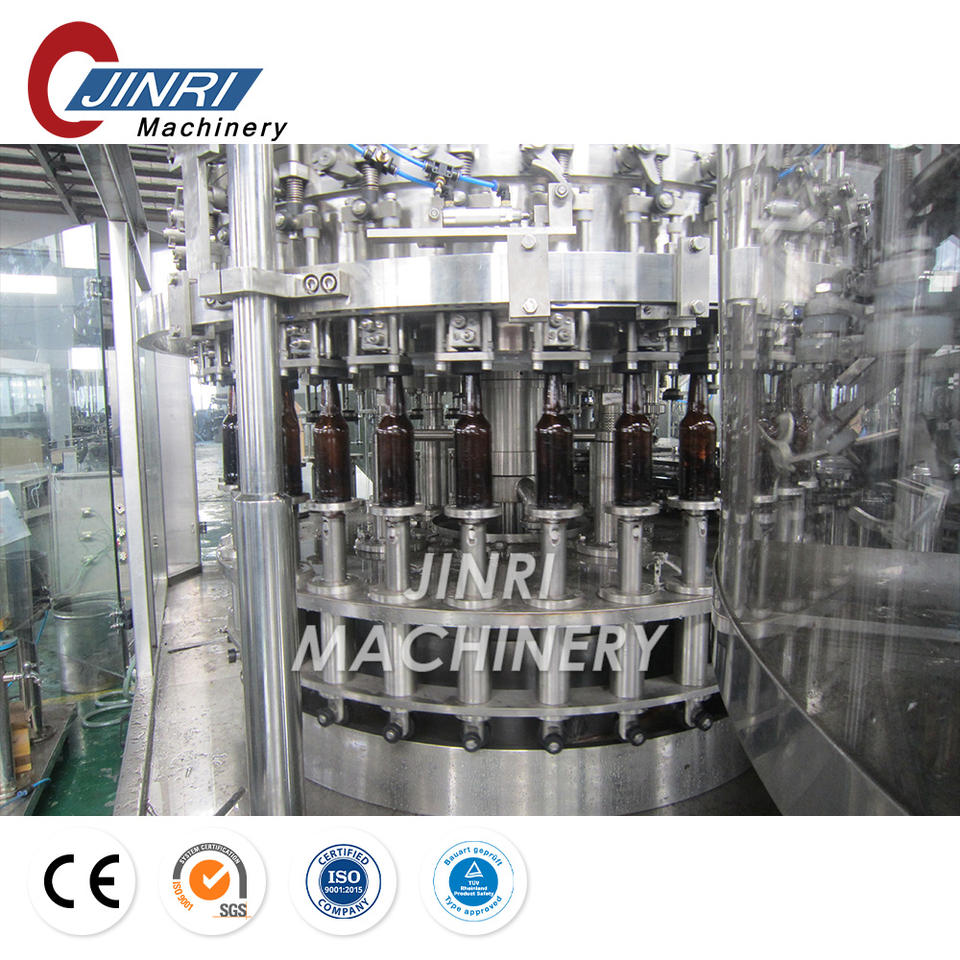 Machine trois en un pour le rinçage, le remplissage et le capsulage de boissons gazeuses dans des bouteilles en verre