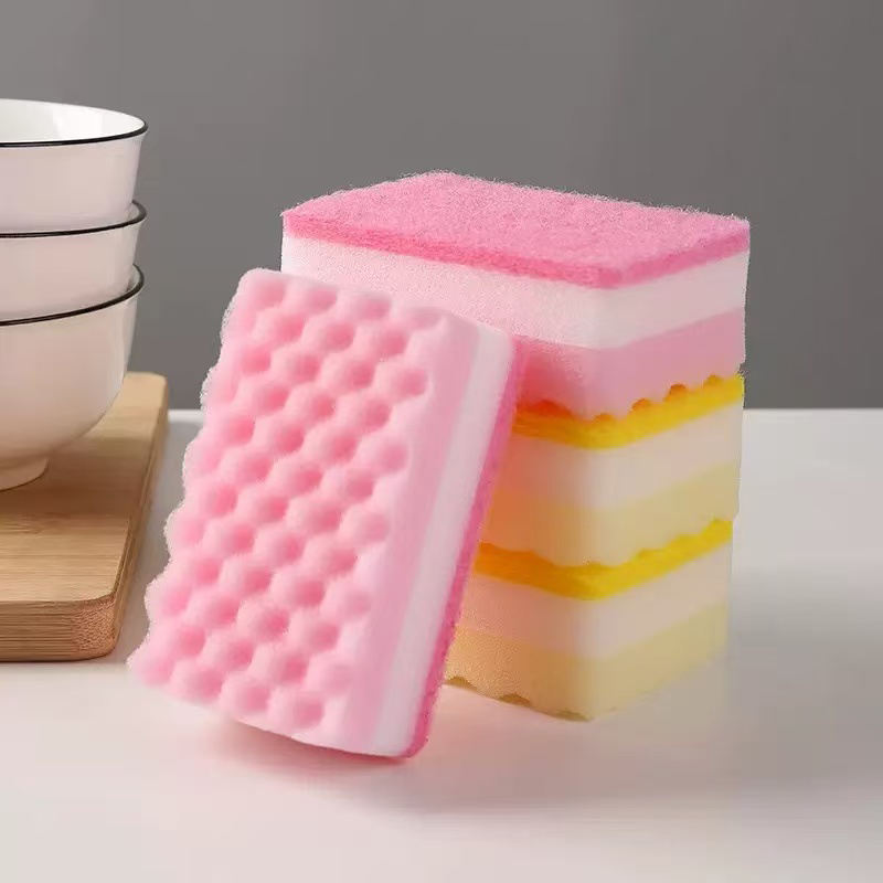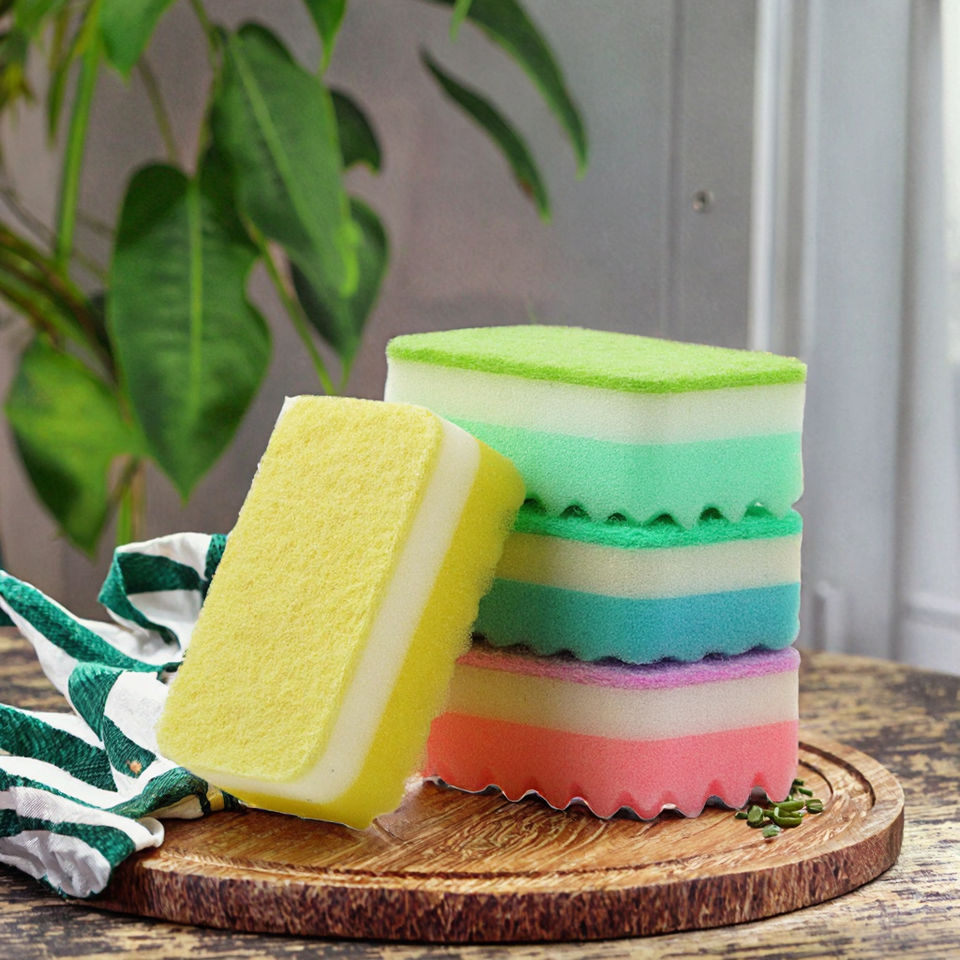 Éponge de cuisine à trois couches, éponge rectangulaire pour la vaisselle, éponge de cuisine, éponge ménagère, éponge durable et écologique pour la vaisselle