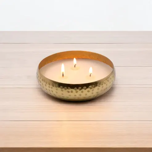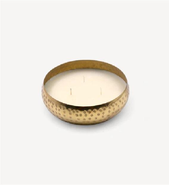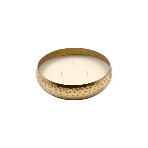 Bougie à trois mèches, design large et rond, bol en laiton martelé, bougie en cire de soja de qualité supérieure