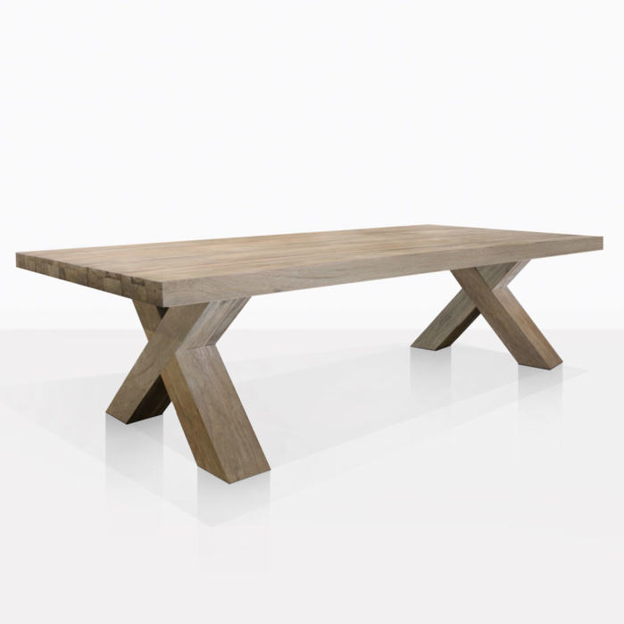 Table de jardin en teck massif de qualité supérieure, couleur teck naturel, pour usage extérieur.