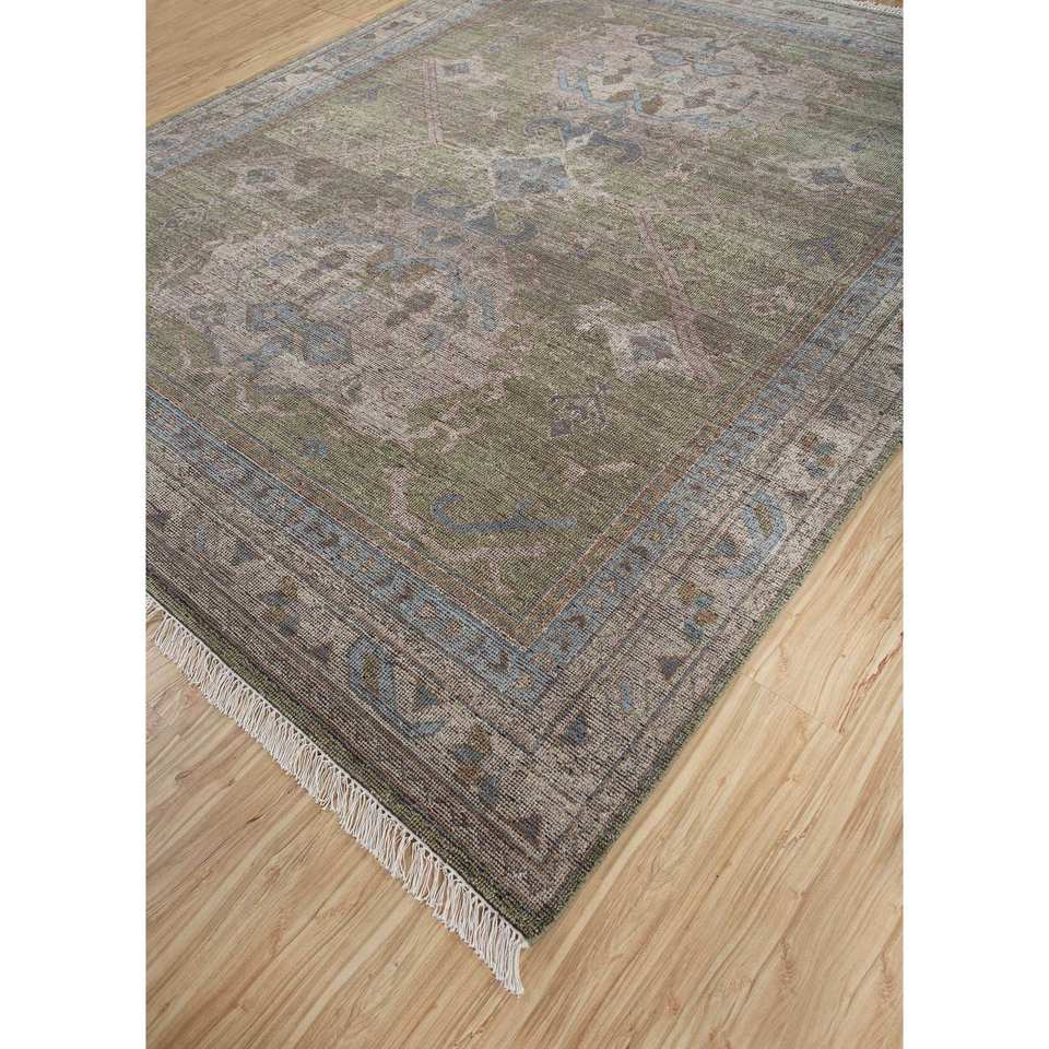 Tapis noué à la main en laine verte thym, motif médaillon, 9x12, rectangulaire, pour couloir, puzzle, pour adolescents, pour décorations de salon Rgs-1282