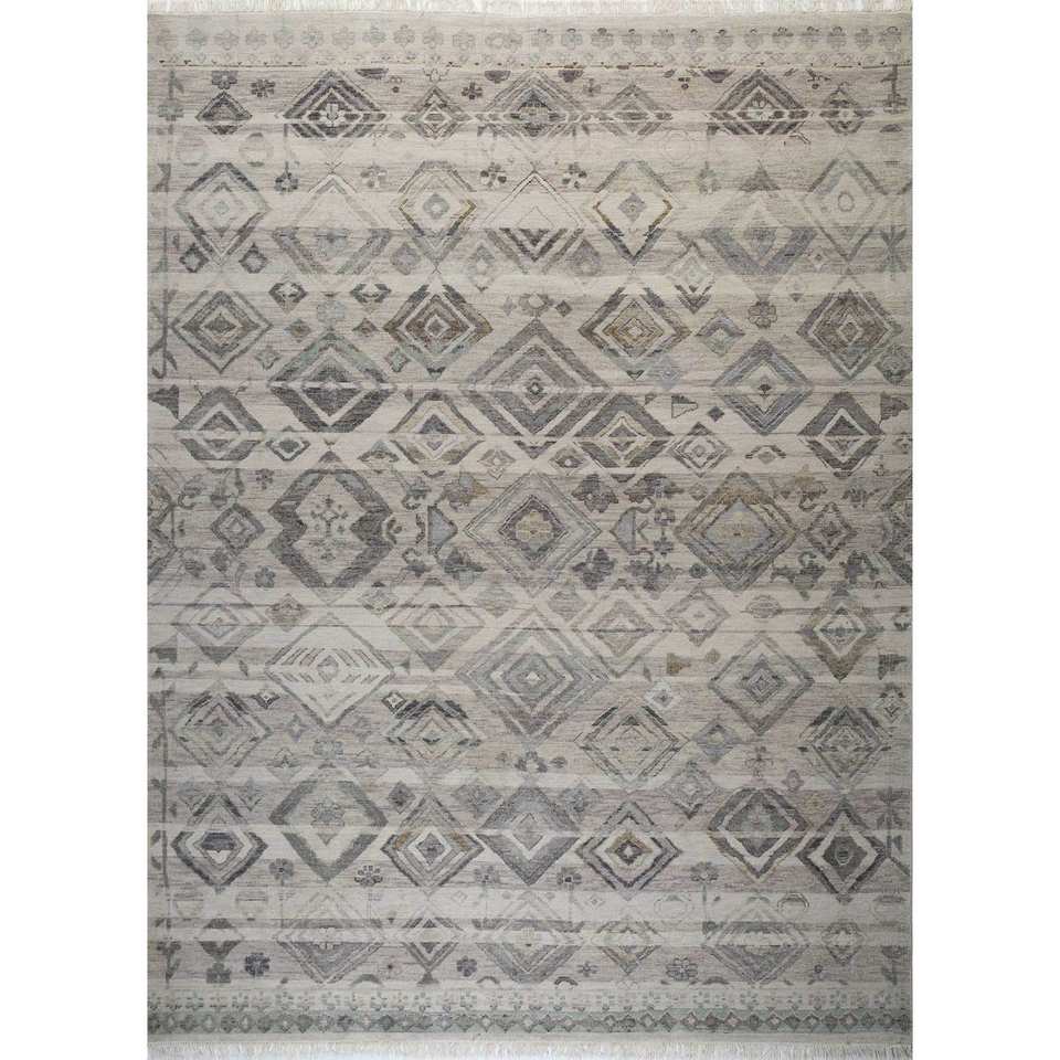 Tapis noué à la main en laine Thyme Ivory, tissage plat géométrique pour salon, puzzle rectangulaire 9x12, couloir