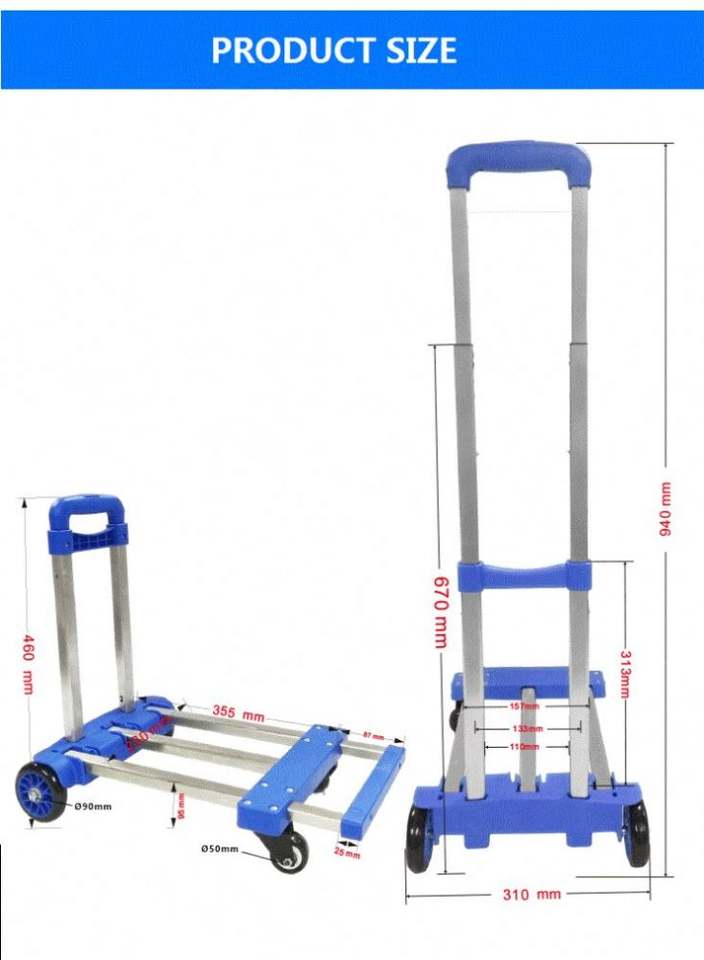 Chariot à main télescopique pliable à 2 roues en acier inoxydable Tian Yu, durable, facile à plier, portable, multifonctionnel, pour bagages d'extérieur