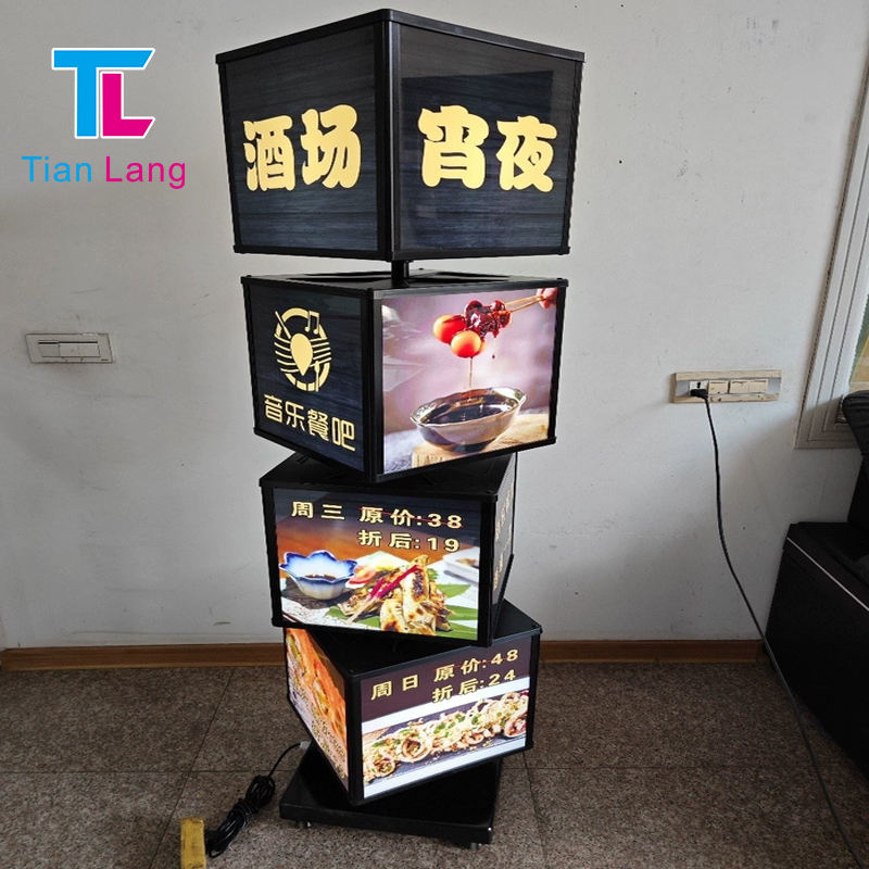 Boîte à lumière LED rotative TianLang pour la publicité extérieure, menu, panneau lumineux à 4 faces pour les cafés et les entreprises