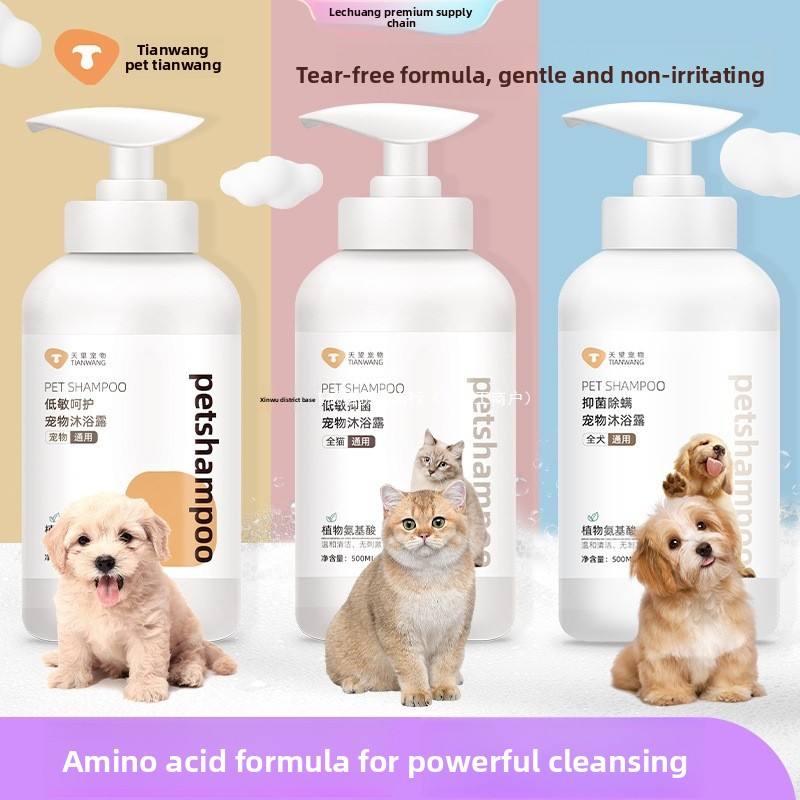 Shampoo pour chiens et chats Tianwang, liquide de bain anti-acariens, parfum longue durée, nettoyage et décontamination, flacon pompe 500 ml